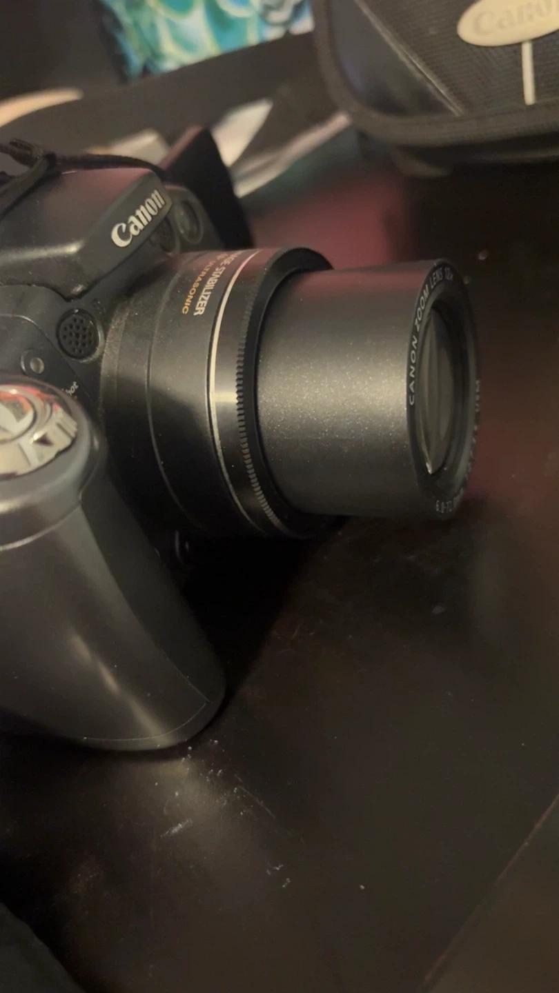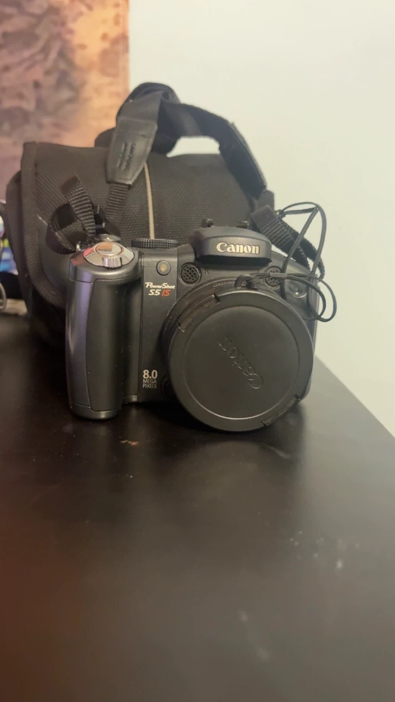 Canon PowerShot S5 IS digital camera with 8.0 megapixels and 12x optical zoom. It features image stabilization and comes with a Canon branded camera bag. Great for capturing memories on the go! Needs a memory card as you can tell in the picture.