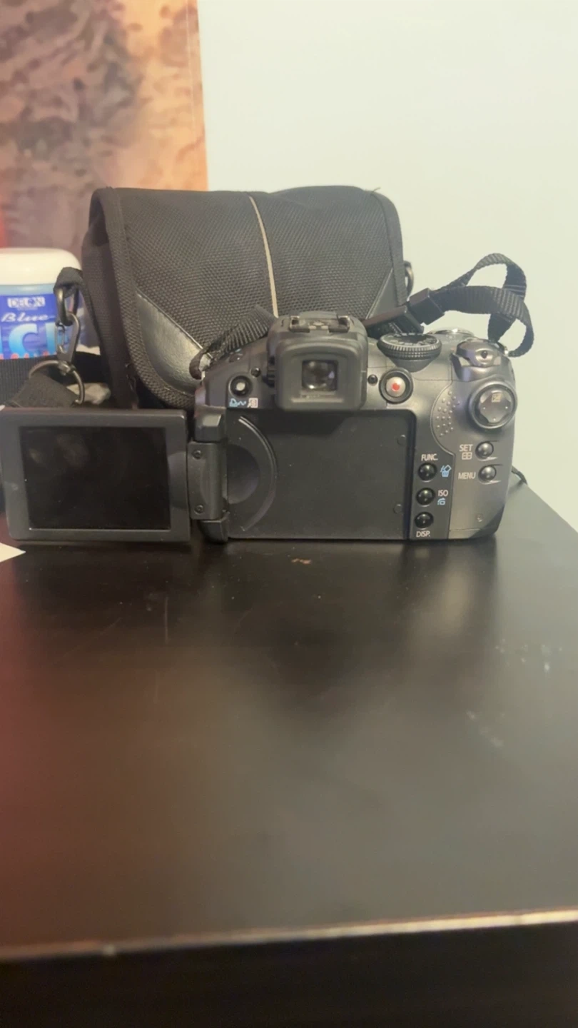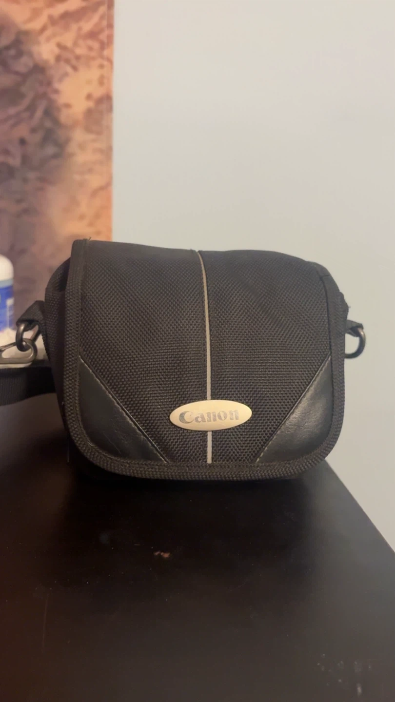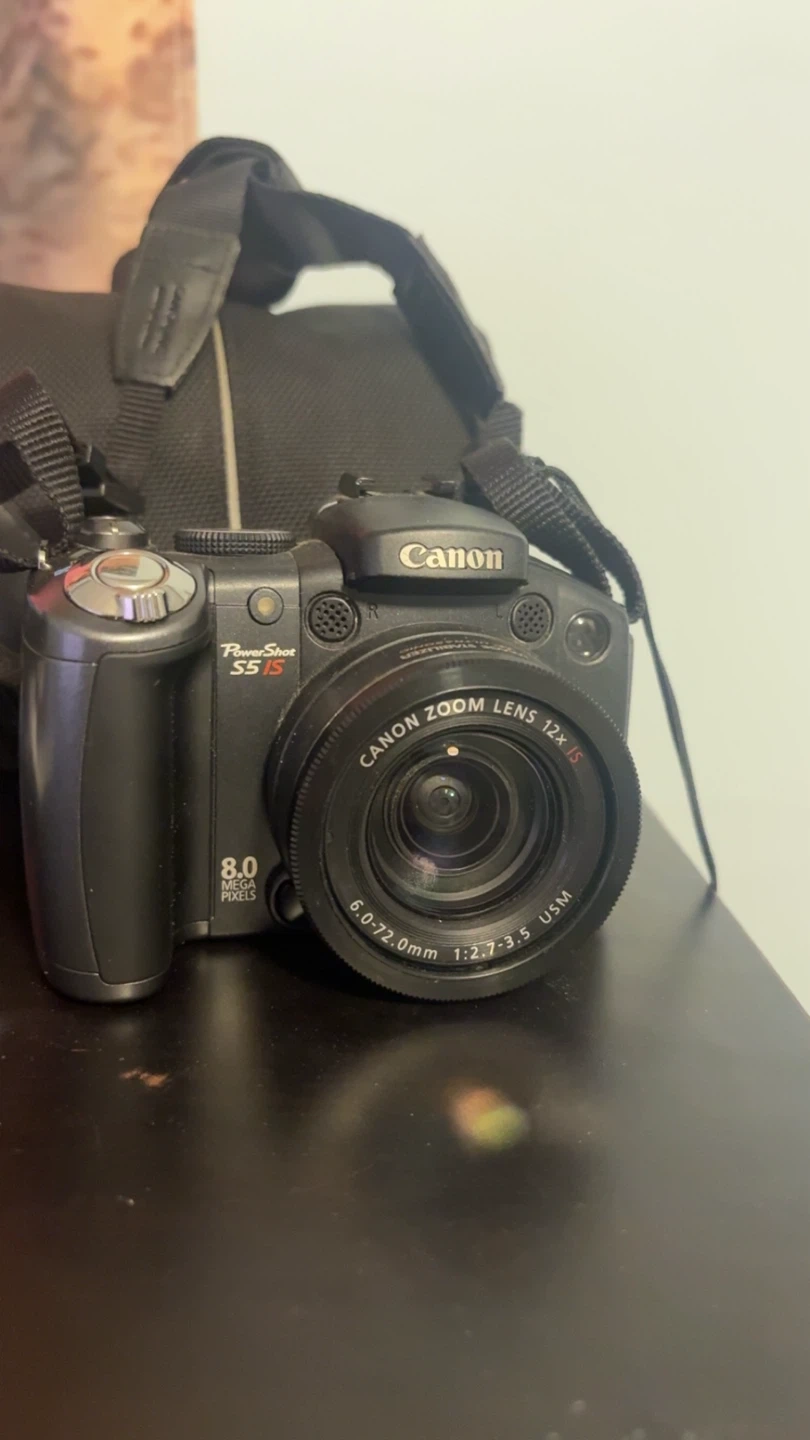 Canon PowerShot S5 IS digital camera with 8.0 megapixels and 12x optical zoom. It features image stabilization and comes with a Canon branded camera bag. Great for capturing memories on the go! Needs a memory card as you can tell in the picture.