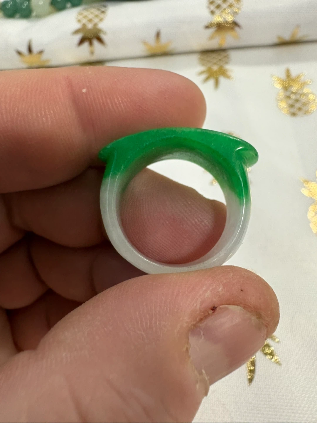These are jadeite rings with a beautiful gradient of green and white & solid green. It's a unique piece for everyday wear.