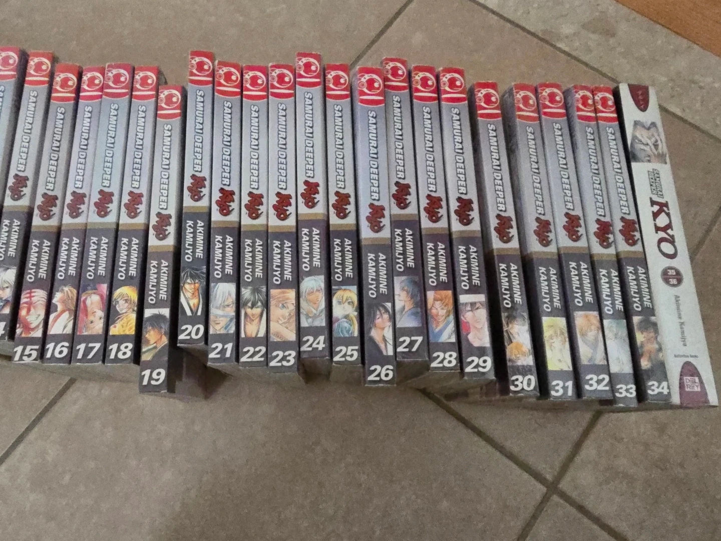 Selling a set of Samurai Deeper Kyo manga volumes, from volumes 1 to 36. Written and illustrated by Akimine Kamijyo. Published by Del Rey Books.