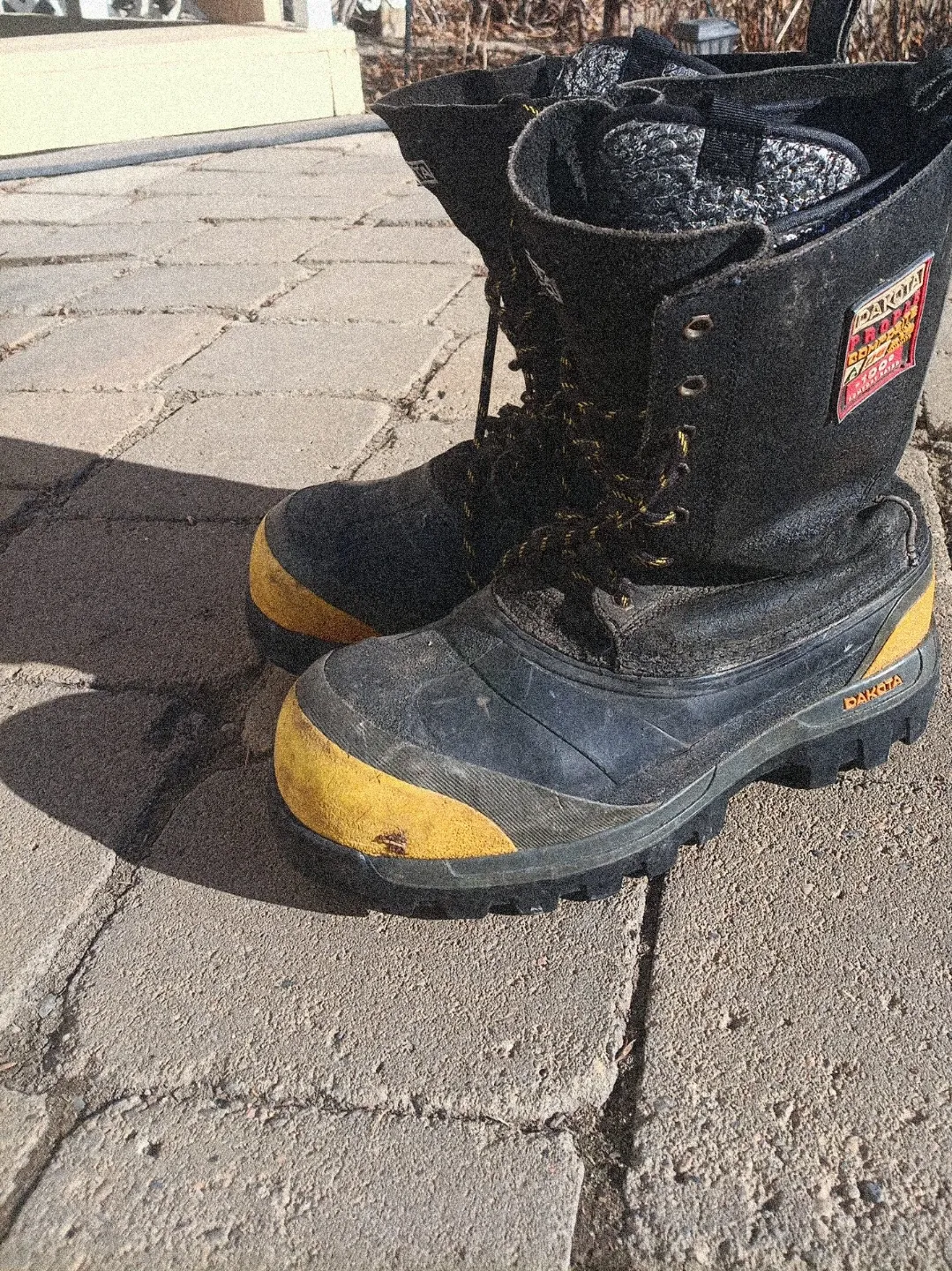 Dakota black and yellow work boots. These boots are designed for durability and protection on the job site. They feature a sturdy construction suitable for tough conditions. *SA APPROVED*