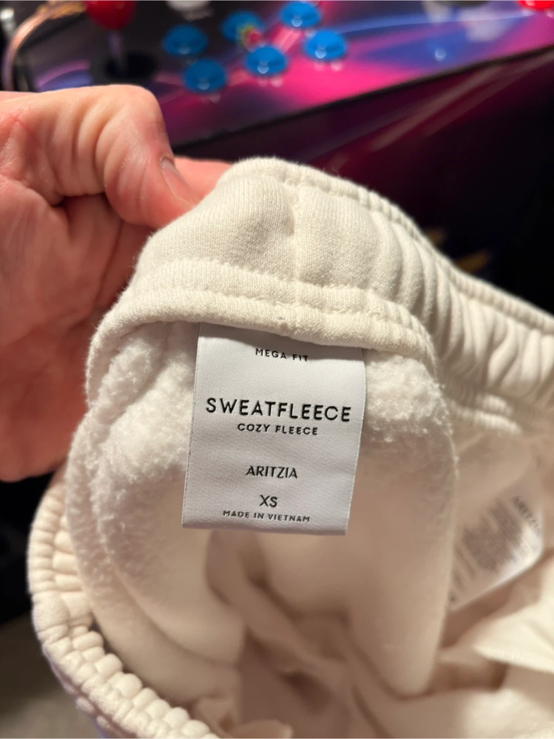These are ARITZIA Cozy Fleece sweatpants in size XS. They're made from a soft fleece material. Perfect for lounging at home or casual outings! Elevated loungewear piece — pairs beautifully with sneakers or an oversized hoodie.