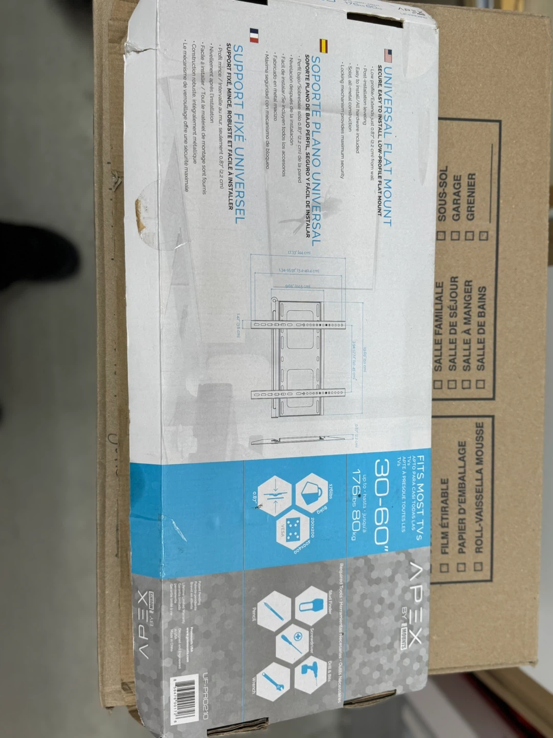 This is an Apex universal flat mount for your TV. It fits most TVs from 30-60 inches and supports weights up to 80 lbs. The mount is made of durable metal and comes with all necessary hardware for installation.