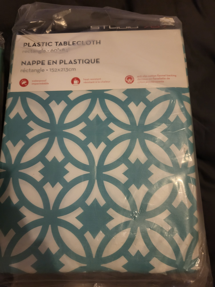 5, New, Studio 704, Plastic Tablelecloths. Waterproof and heat-resistant. Rectangle, 60"x84". Various designs.