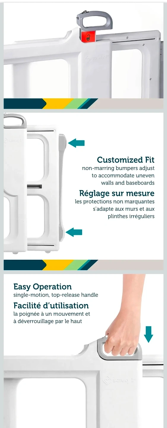 * 4-in-1 versatility: Install at the top of stairs, bottom of stairs, hallways, and doorways.