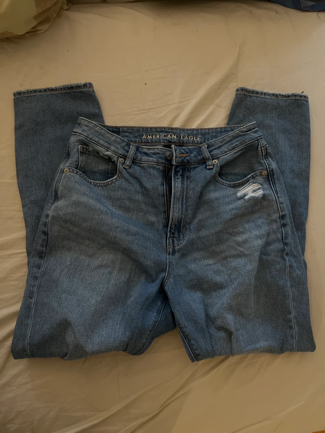 Selling a pair of American Eagle mom jeans in size 6. They're in great condition and have a stylish, comfortable fit. Perfect for everyday wear!