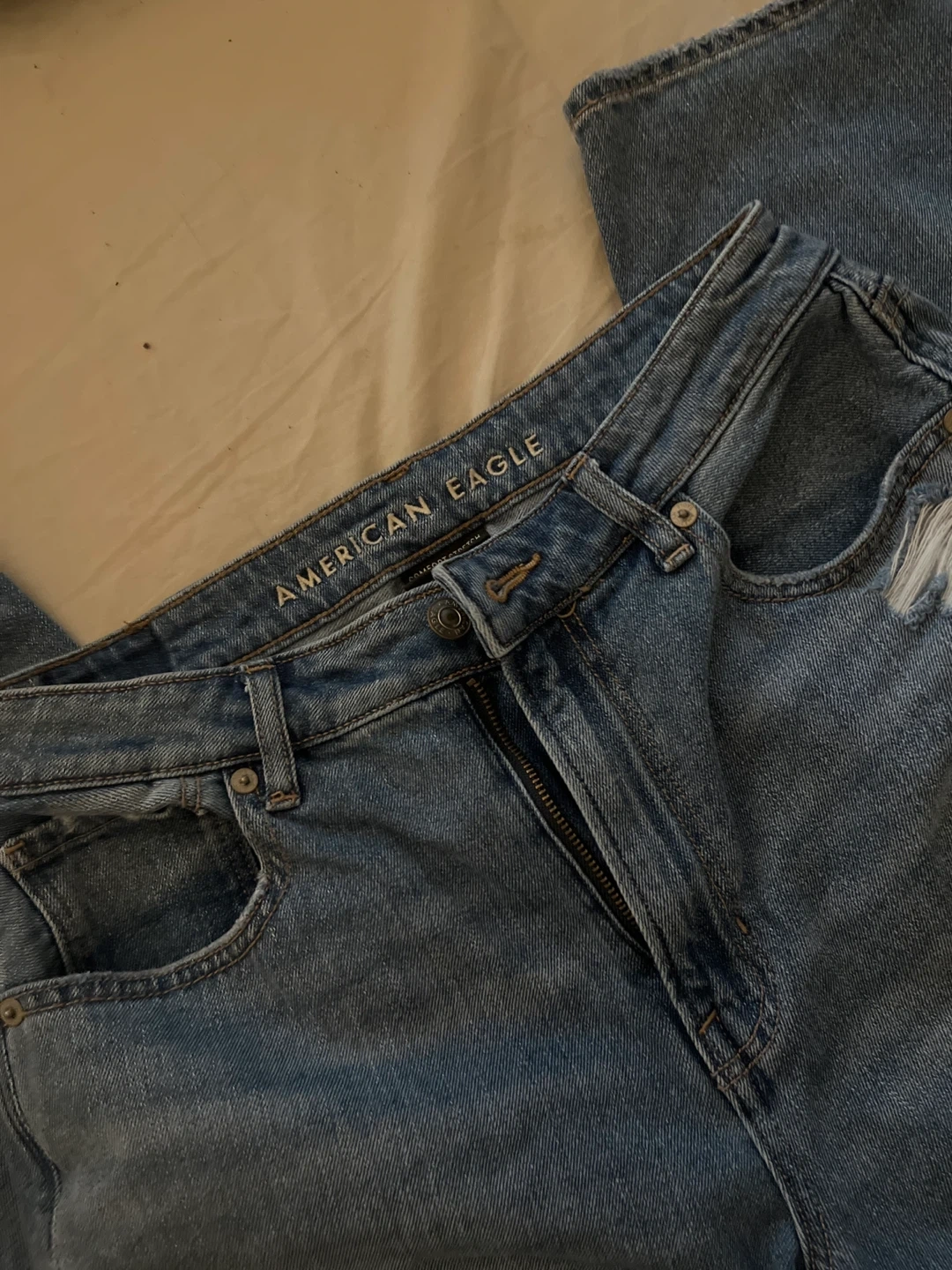 Selling a pair of American Eagle mom jeans in size 6. They're in great condition and have a stylish, comfortable fit. Perfect for everyday wear!