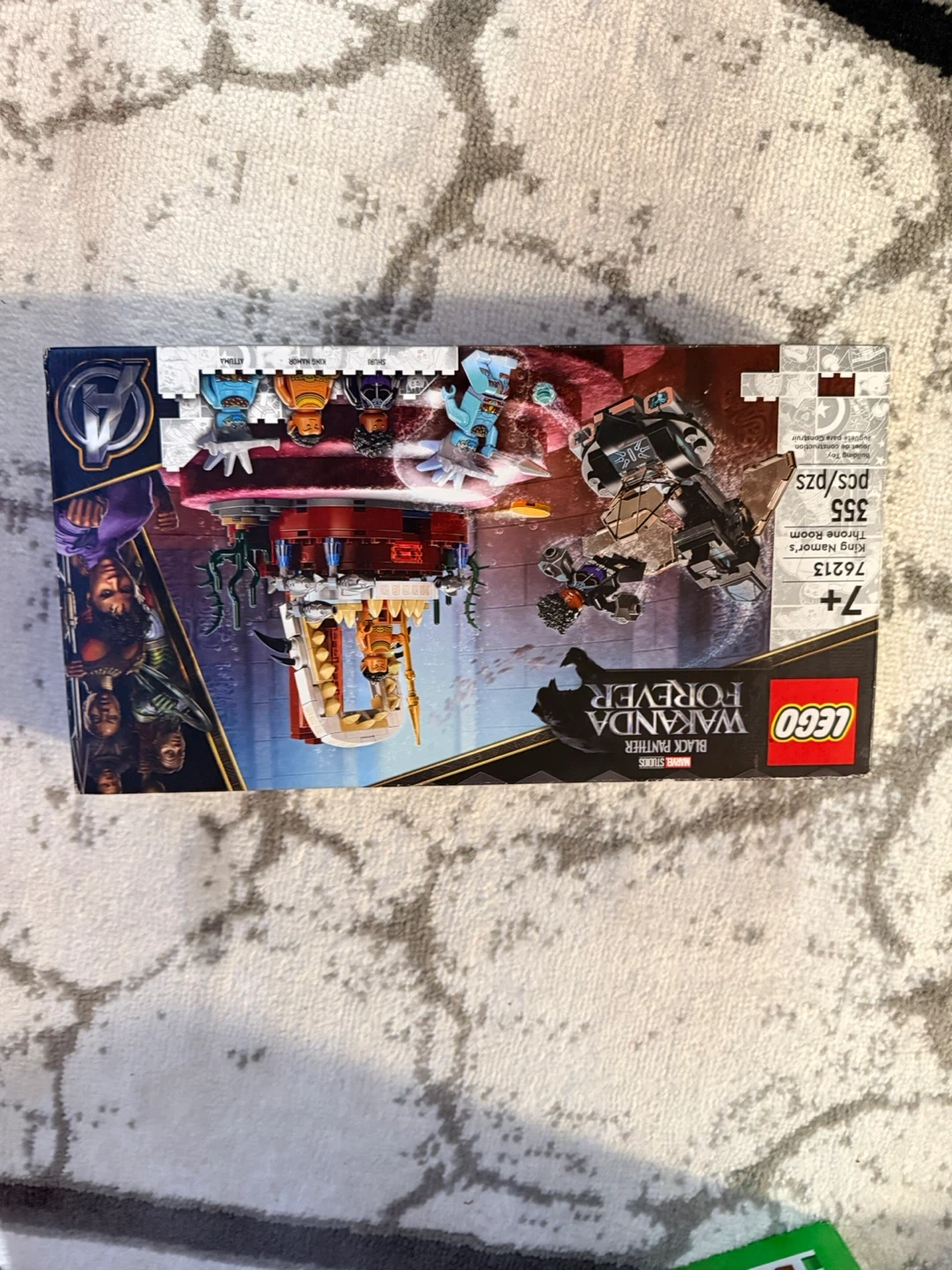 LEGO Marvel Studios Black Panther: Wakanda Forever set. Includes Shuri's Sunbird with stud shooters. 355 pieces and recommended for ages 7+.