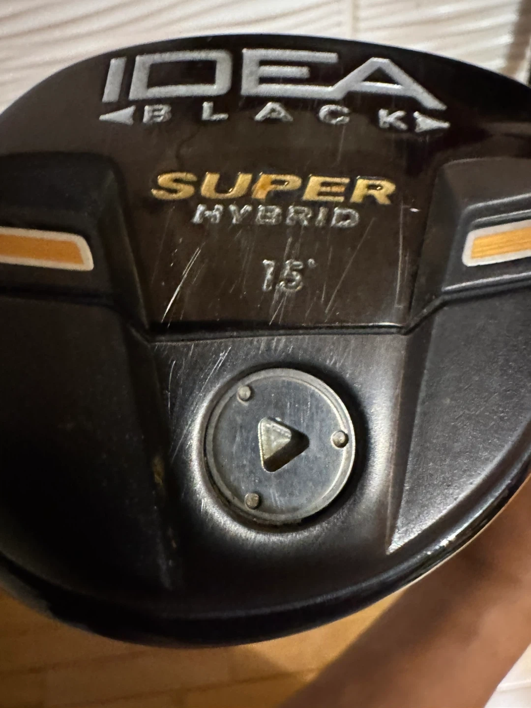 Callaway IDEA Black Super Hybrid golf club. It's a 15 degree loft. Includes a black and gold headcover. Perfect for golfers looking to add a versatile club to their bag!