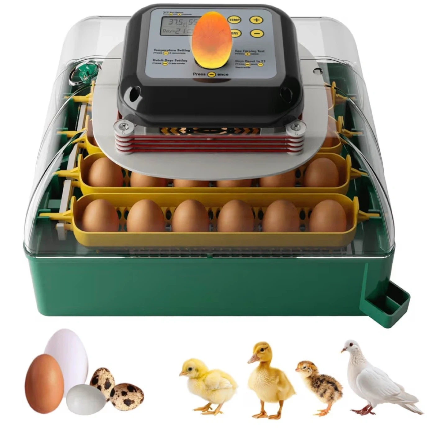 This automatic egg incubator helps hatch eggs with precise temperature control. It's designed to turn eggs automatically, making the hatching process easier. Great for hatching chicks, ducklings, and other poultry!