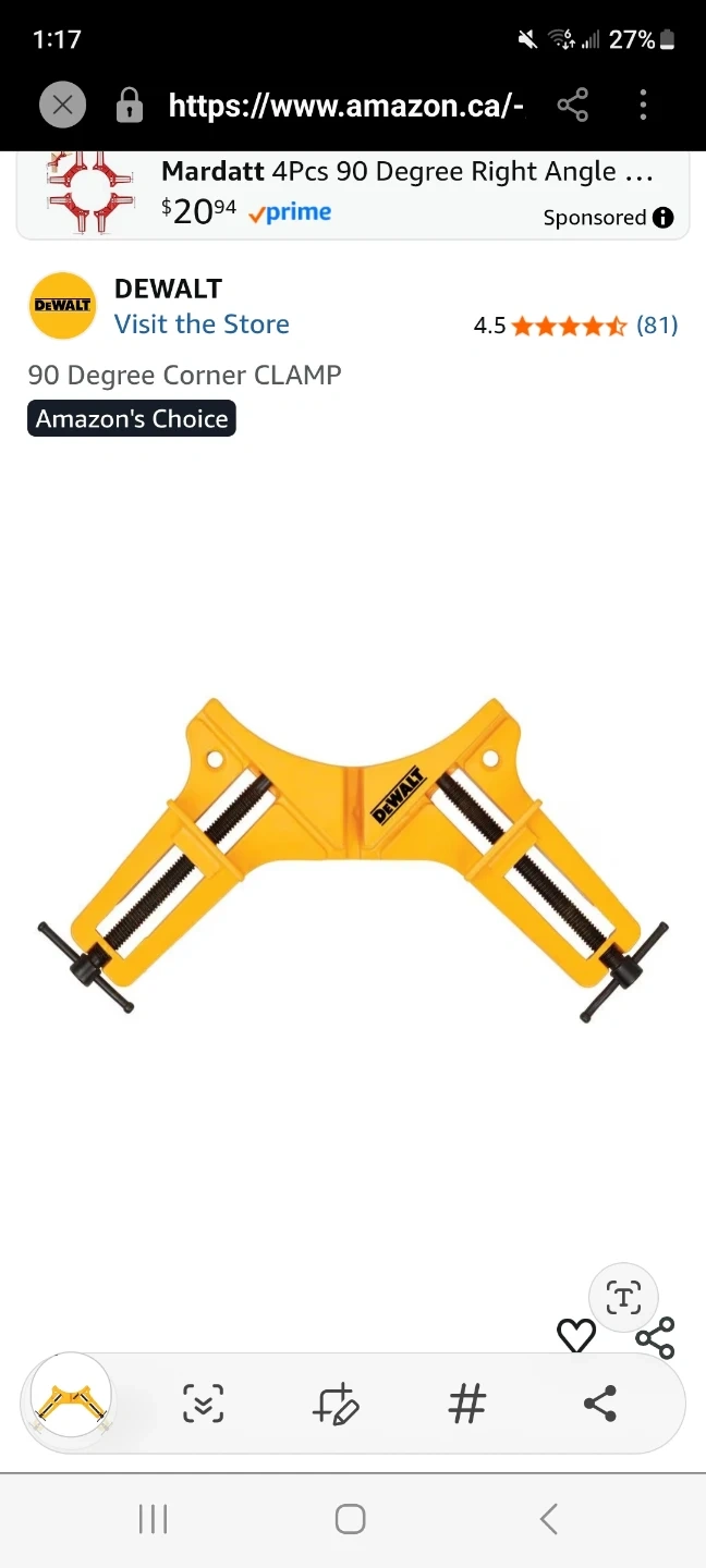 3 Pcs DeWalt 90 Degree Right Angle Corner Clamp Set