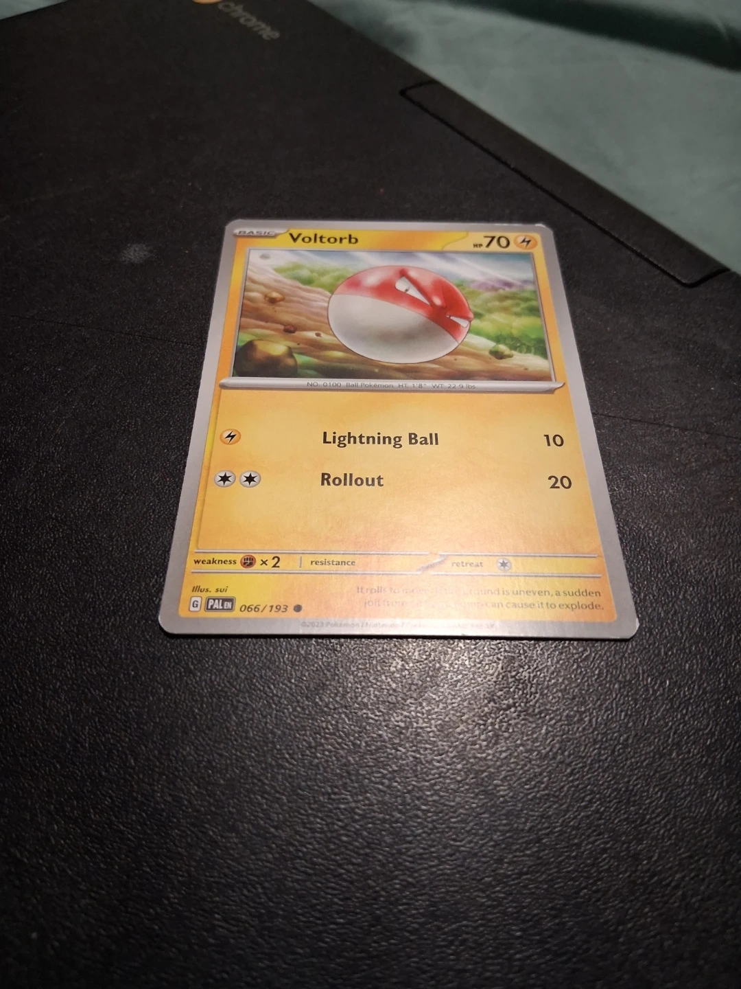 This is a basic Voltorb Pokémon card, number 066 out of 193. It has 70 HP and two attacks: Lightning Ball for 10 damage and Rollout for 20 damage. It also has a weakness to Fighting type attacks.price is not firm open to offers