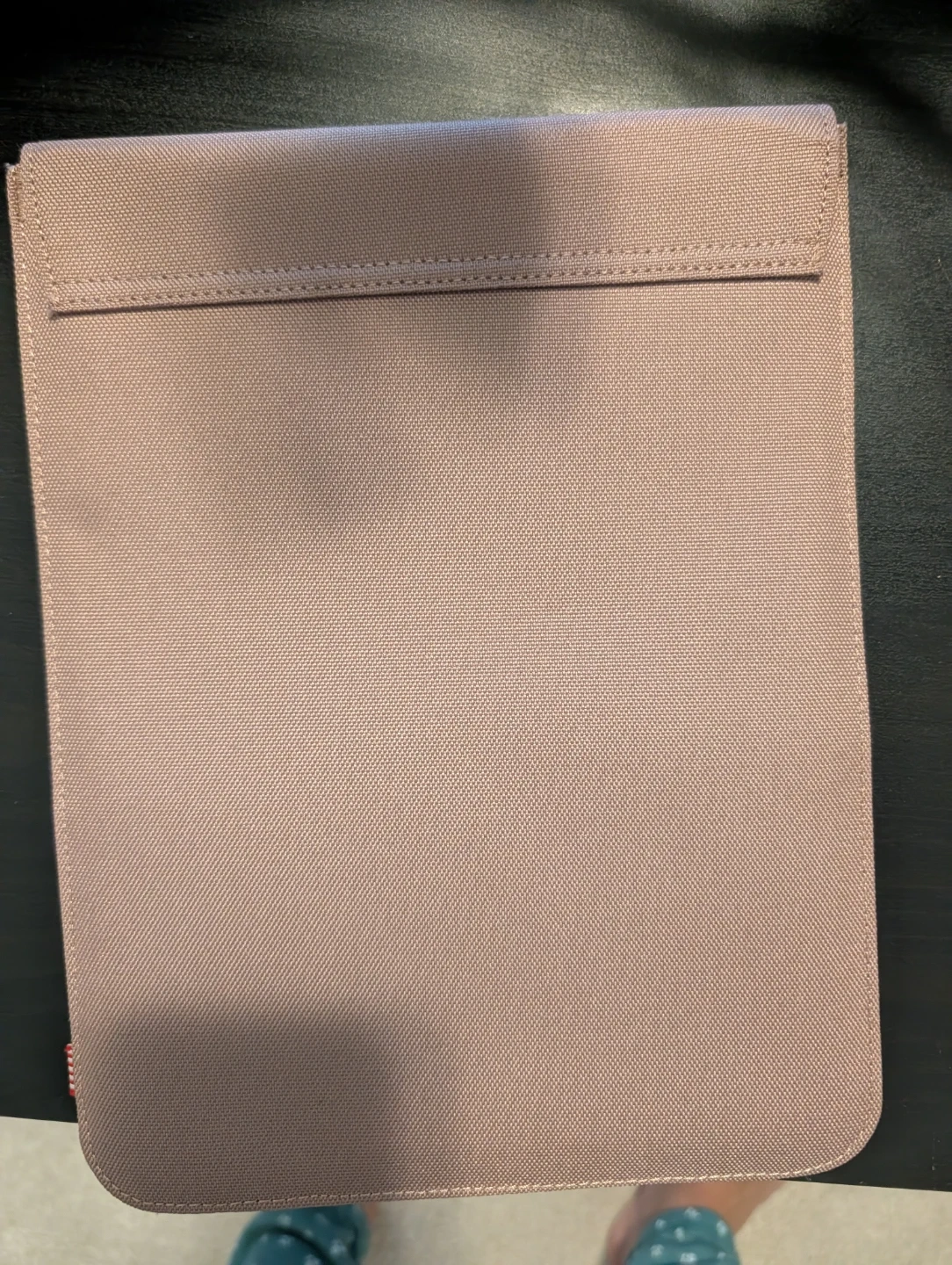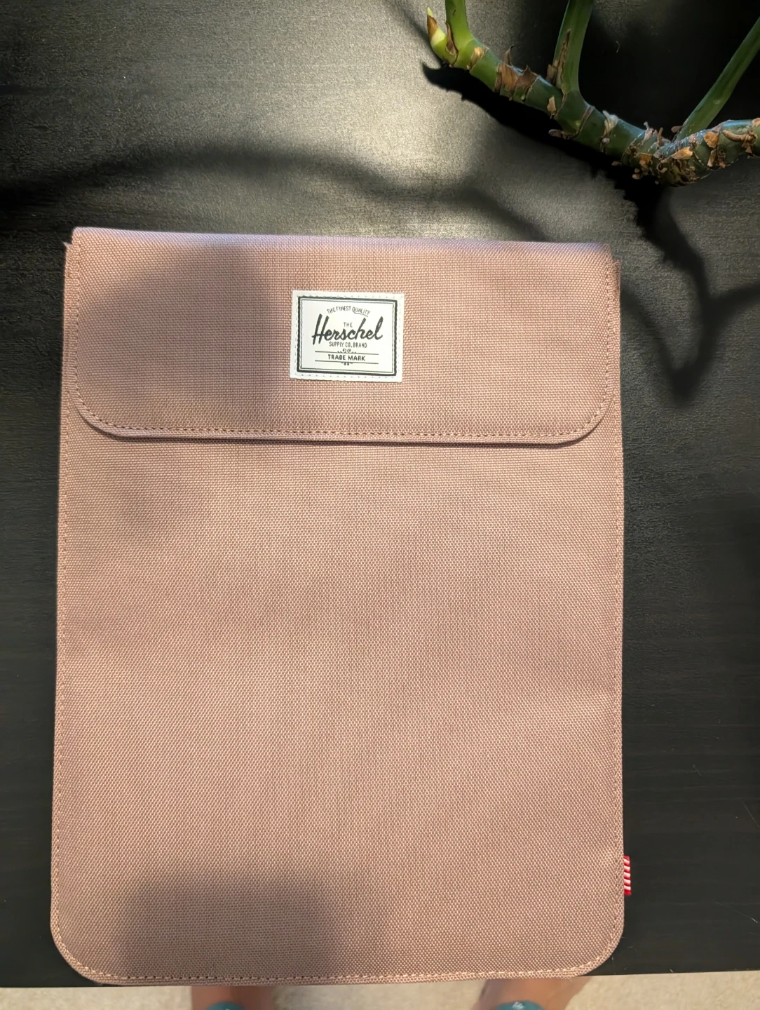 Herschel brand tablet sleeve. It's a dusty rose colour. Protects your electronics while on the go!