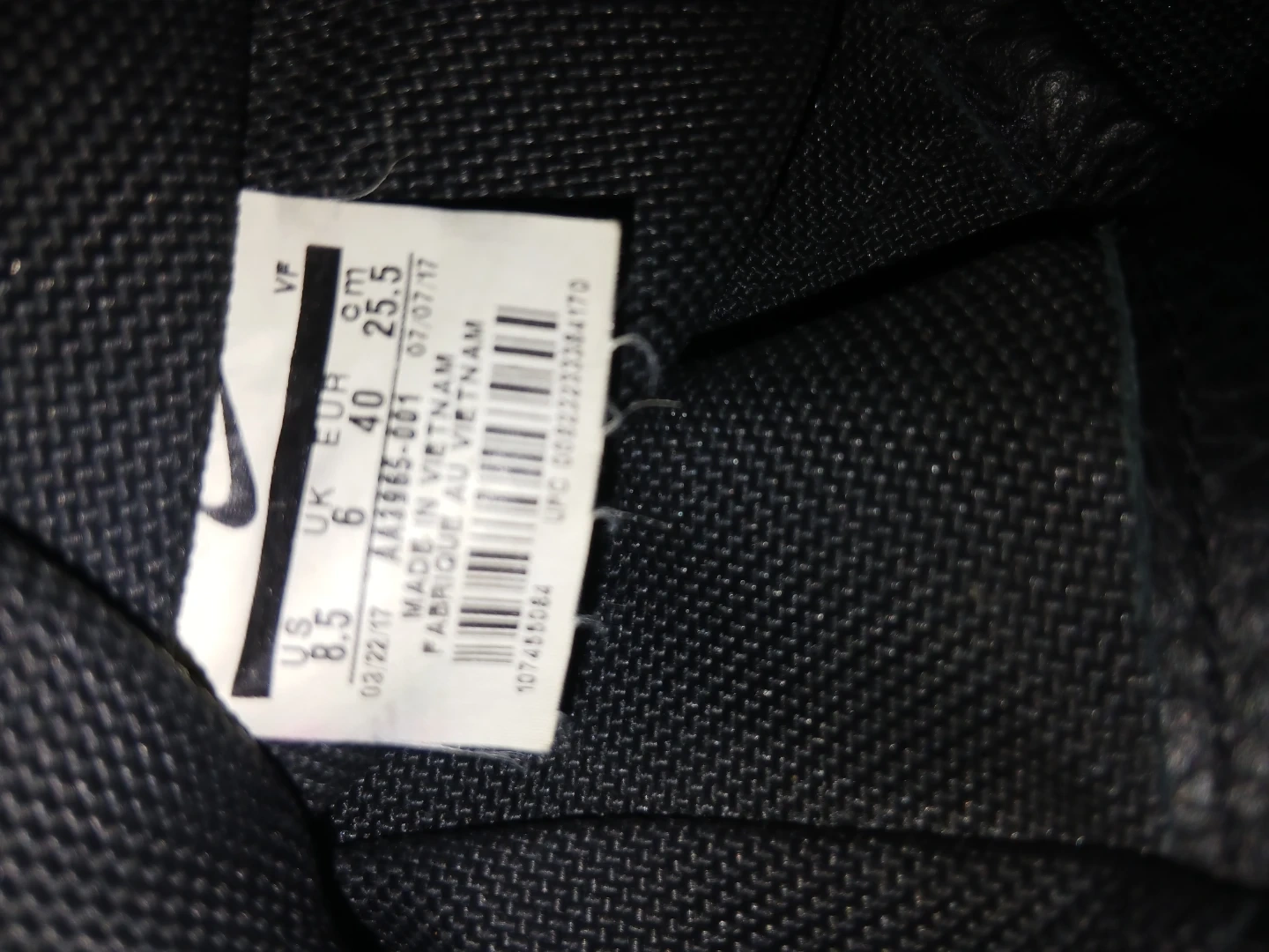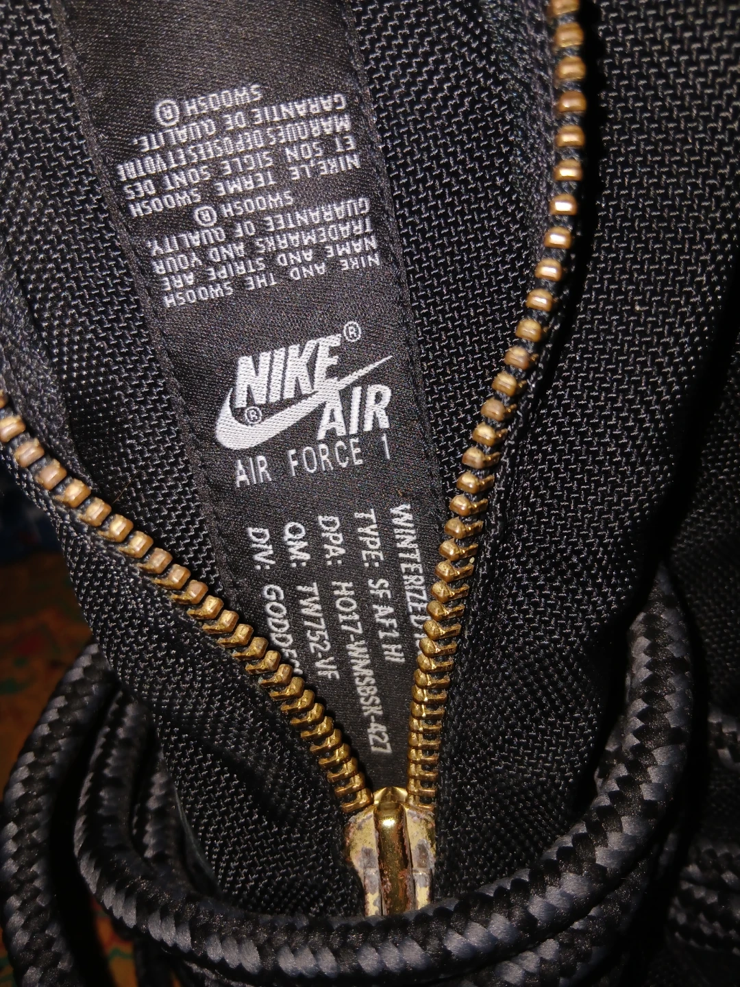 These are Nike Air Force 1 Winterized High Top Boots in black. They feature a gum sole and gold zippers. The US size is 8.5, EUR 40, UK 6, and CM 25.5.