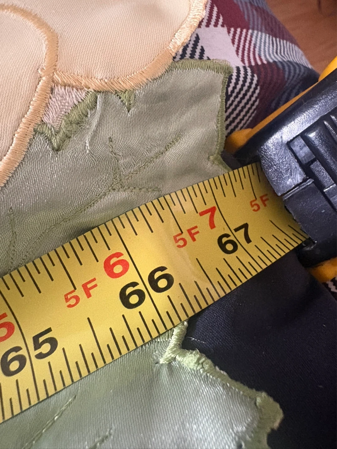 Measures approximately 67 inches by 48 inches. Features a delicate green leaf embroidery on a cream-coloured fabric. Suitable for crafting or decorative accents.