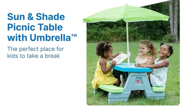 Brand New Step2 Sun n Shade Picnic Table wt Umbrella