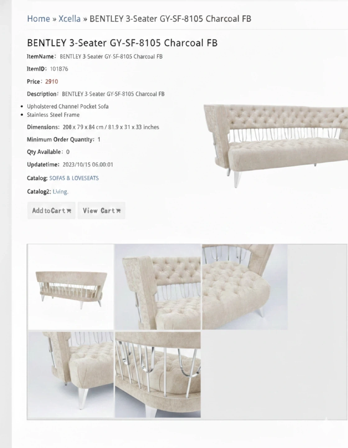 This BENTLEY 3-Seater sofa features upholstered channel pocket tufting and a sleek stainless steel frame. It's a stylish addition to any living space. Dimensions: 208 x 79 x 84 cm.