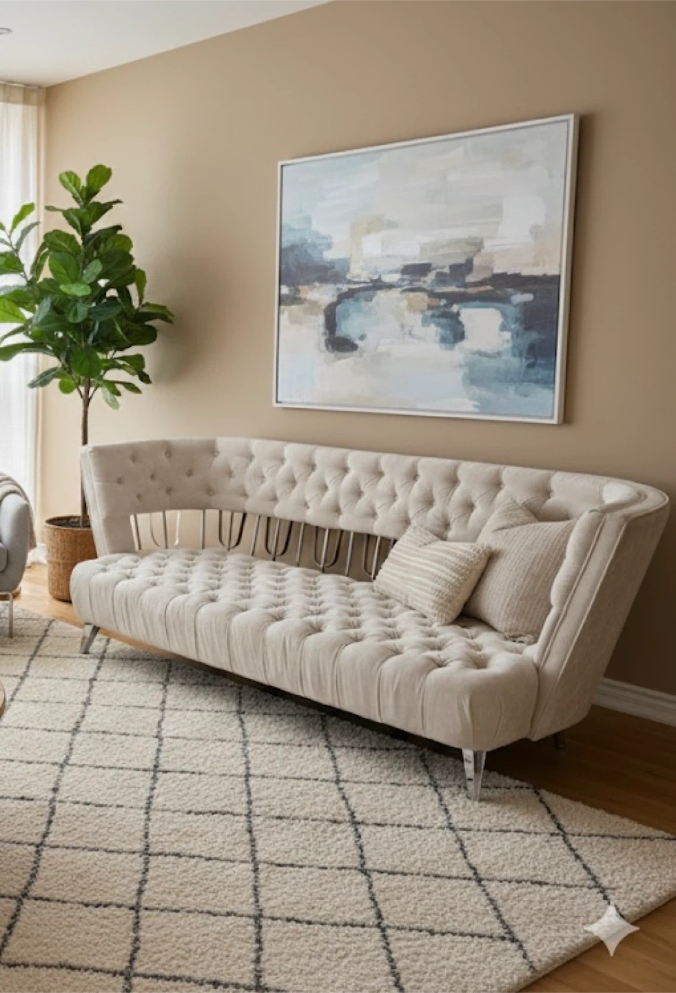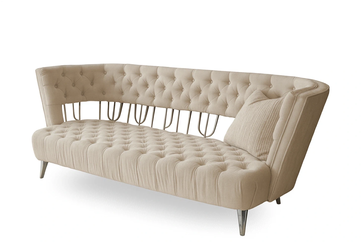 This BENTLEY 3-Seater sofa features upholstered channel pocket tufting and a sleek stainless steel frame. It's a stylish addition to any living space. Dimensions: 208 x 79 x 84 cm.