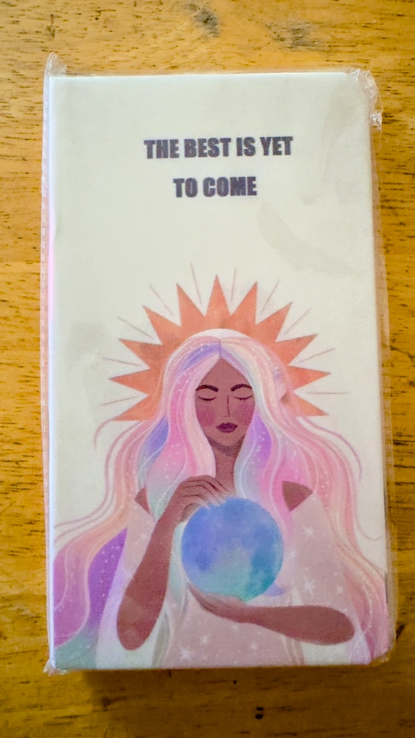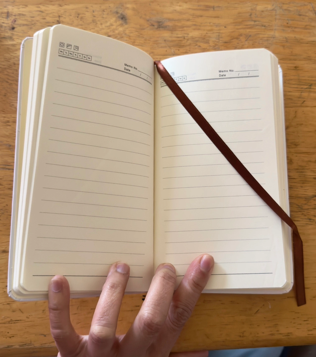Hard bound. Blank lined journal with a brown ribbon bookmark. Has a motivational quote and image on the front cover.