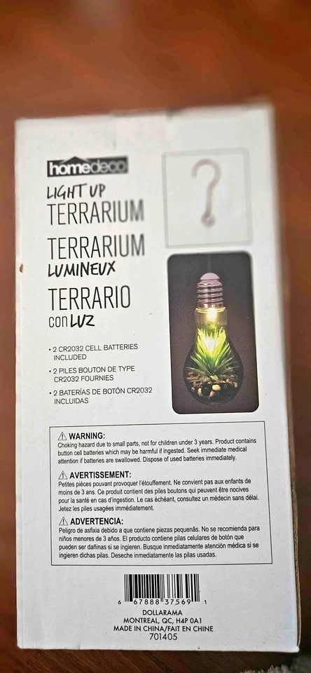 Buy & SellLight Up Bulb TerrariumLight Up Bulb Terrarium$10New In Box $10 Pick up NE side by Manning Town CenterWHERE TO MEETCheck LocationView MapSELLERVanessa RogersBrintnell292 reviews0 chats·0 favorites·5 viewsSEND CHAT TO SELLERHi Vanessa Rogers! I’m interested in your listing.Hi Vanessa Rogers! I’m interested in your listing.Get the Karrot app to chatSign In to chat