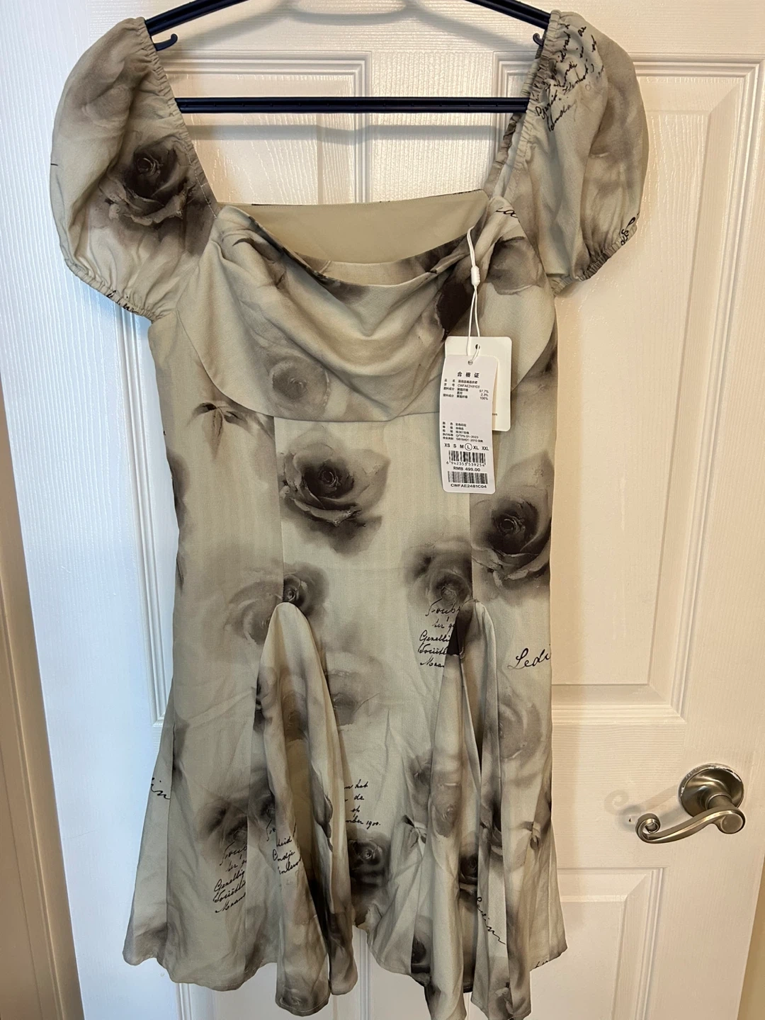 This dress features a romantic floral print with delicate puff sleeves and a ruffled hem. It's made from a lightweight, sheer fabric perfect for warmer weather. The vintage-inspired design makes it a sweet choice for a garden party or casual outing. $15 each, $30 for three of them.
