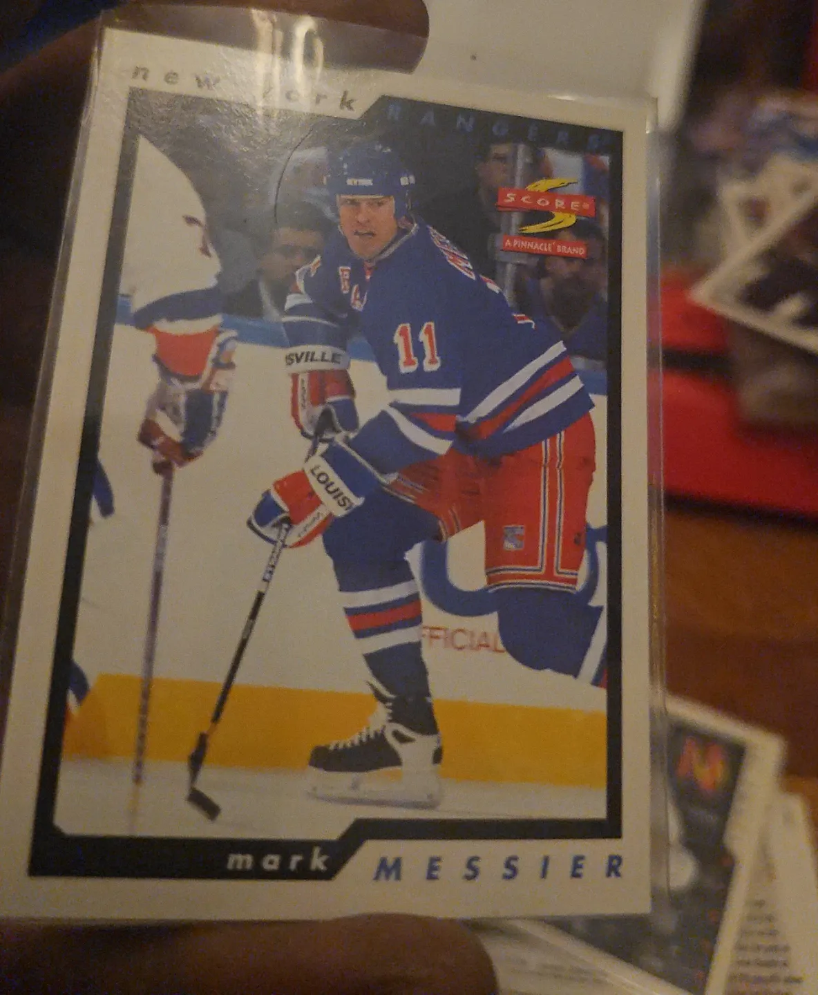 Selling a Mark Messier hockey card from the New York Rangers. It's a Score card, which is a Pinnacle brand. A great addition to any hockey card collection