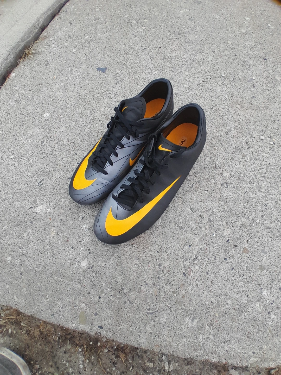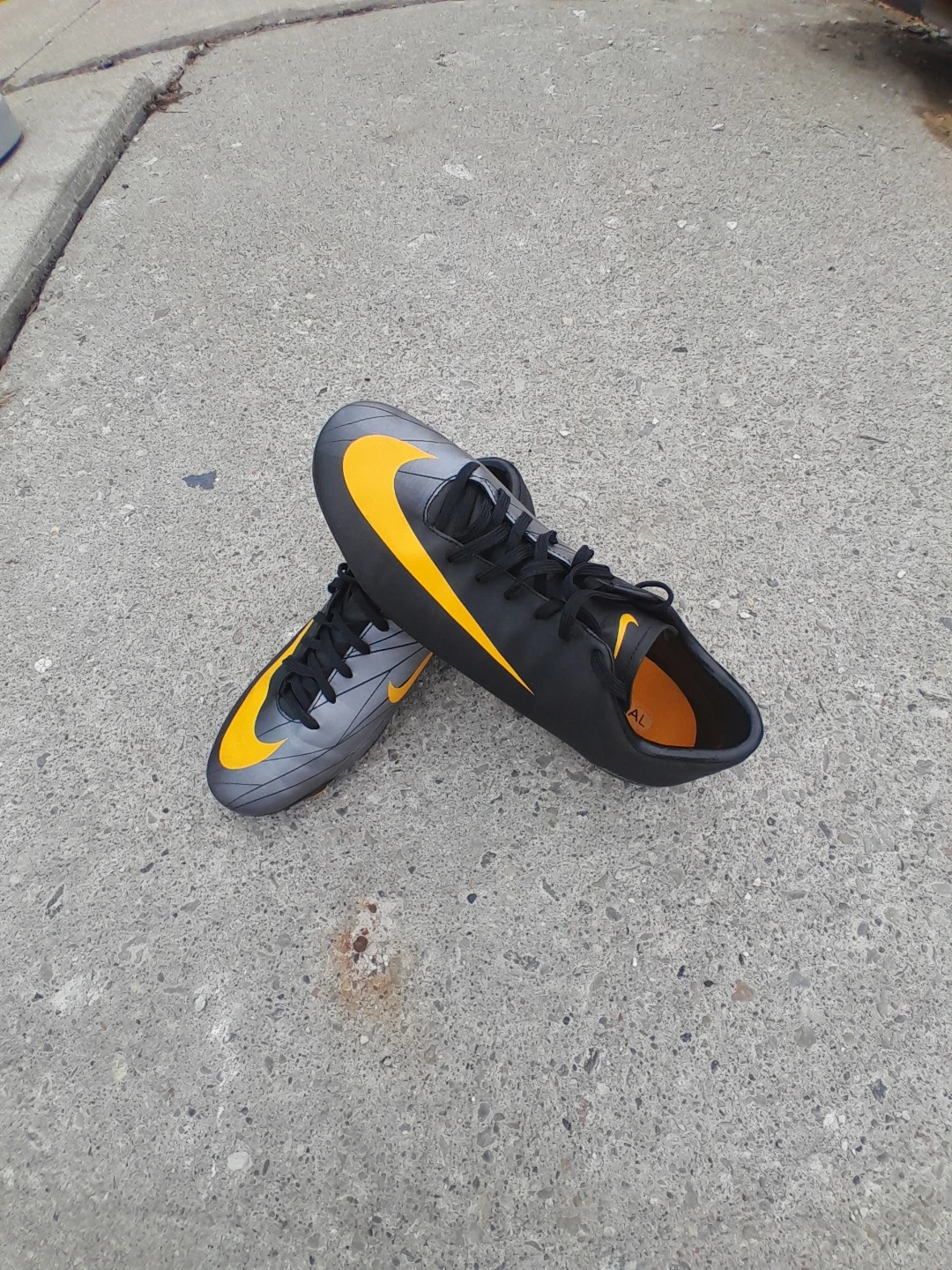 Nike Mercurial soccer cleats. These cleats are designed for soccer performance. They feature a synthetic upper and a durable outsole men's size 9.5