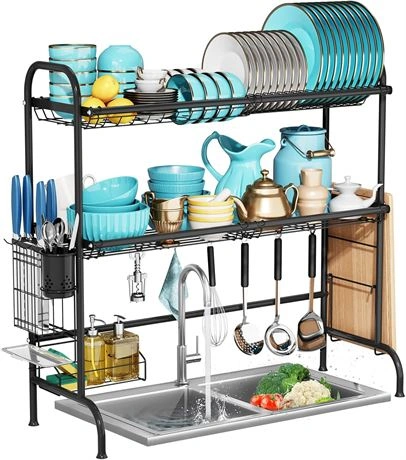 Over the Sink Dish Drying Rack - Double-Layered Black