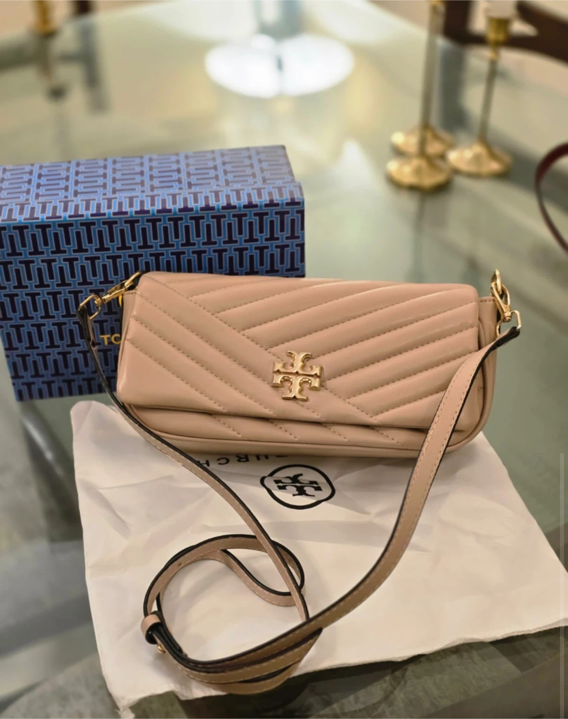 A chic Tory Burch small bag with signature chevron quilting. It's perfect for carrying essentials on the go. The bag comes with a dust bag and original box.