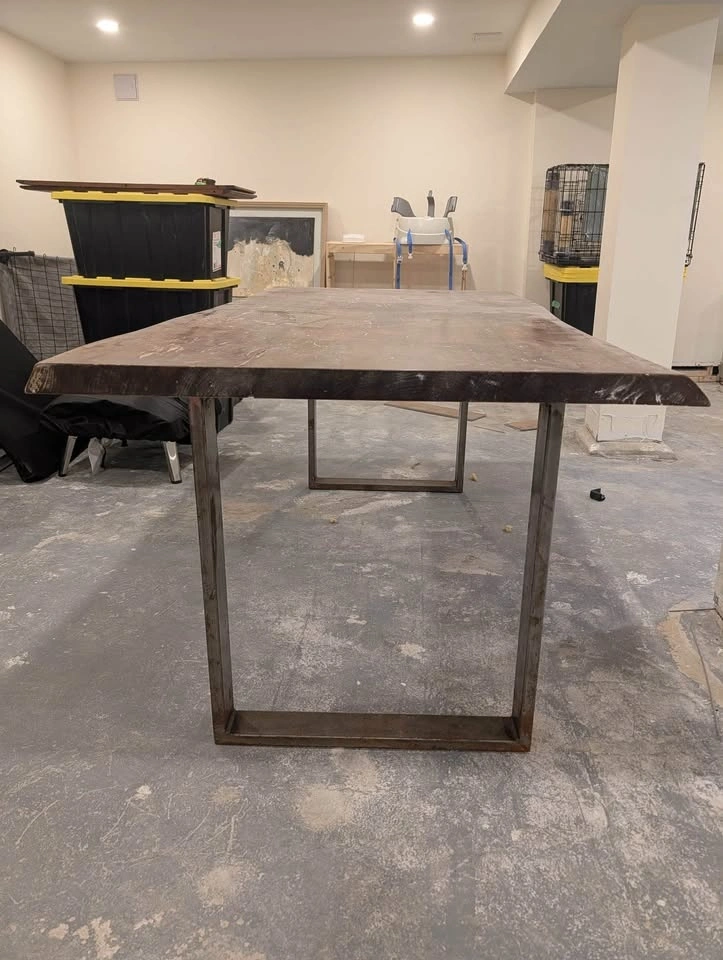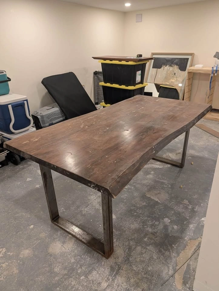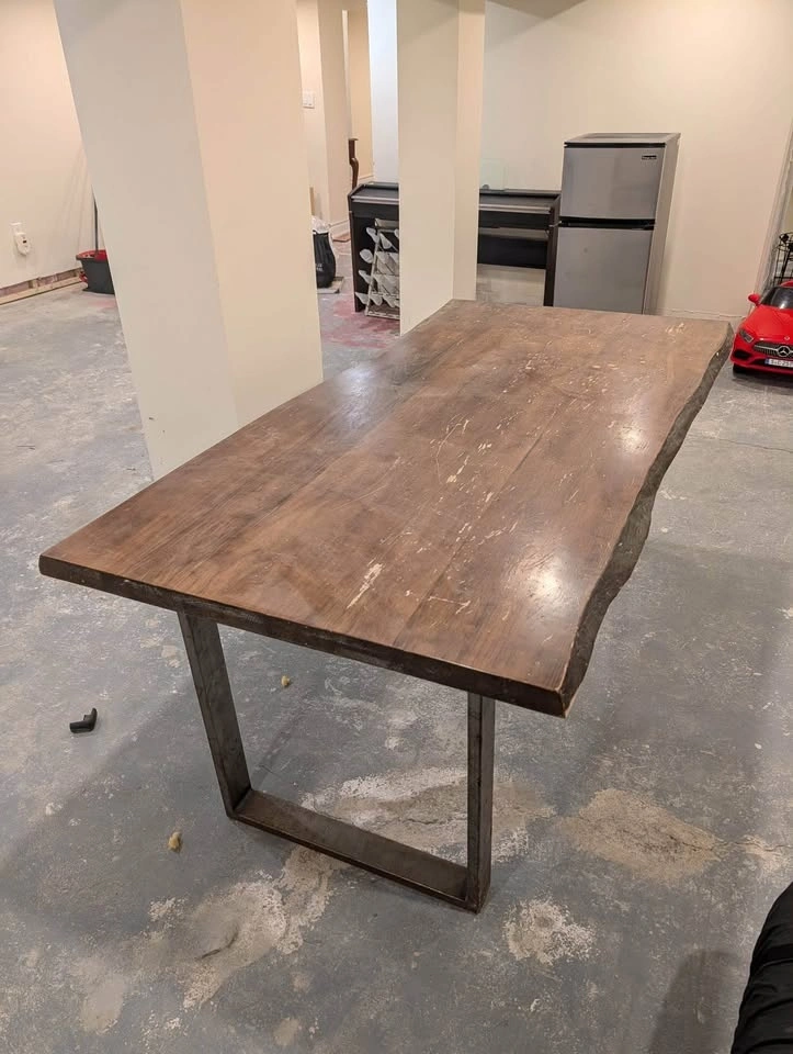 Live Edge Wood Dining Table with Metal Legs. Seats 6. Heavy! Some wear as shown in photos. 71” L x 37” W x 30” H. Legs are removable. $300 or best offer. Pick up only in Mimico area.