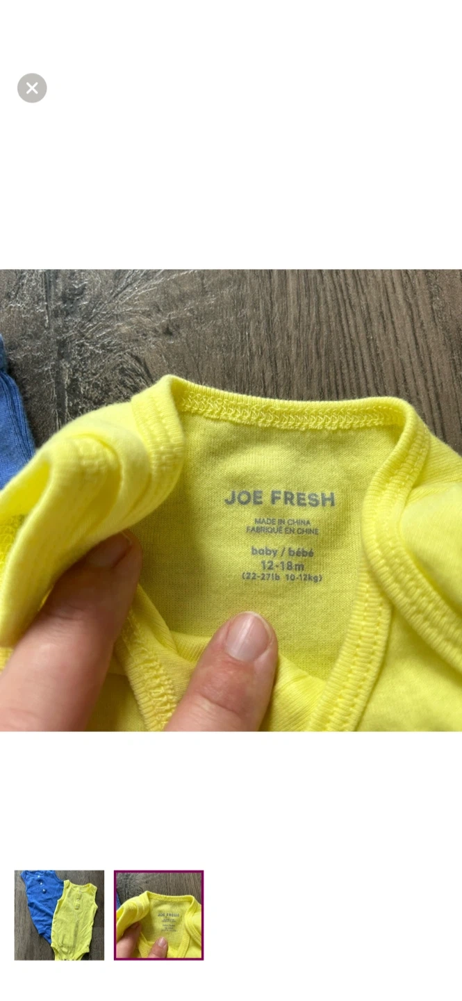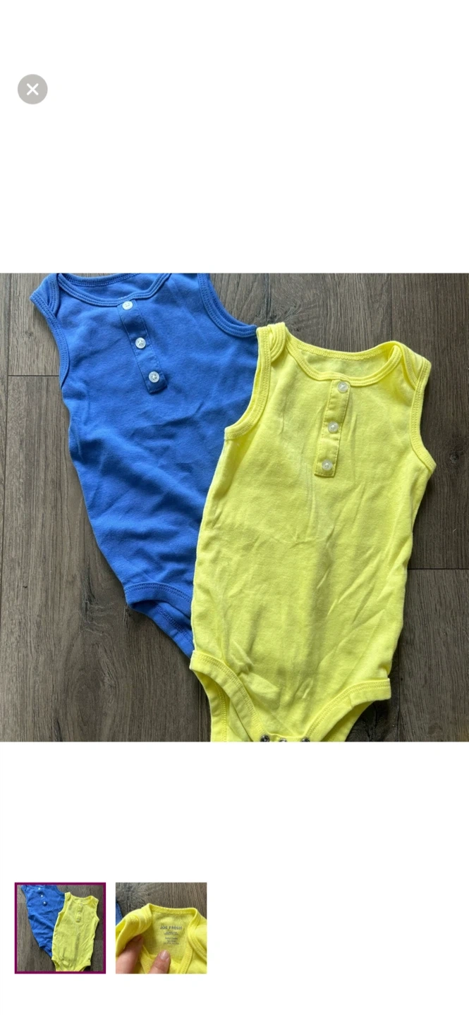 Joe fresh brand. Bundle of 2 tank top onesies. One bright yellow and one blue. Size 12/18m. Brand new condition