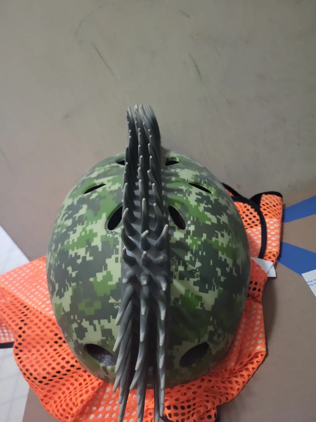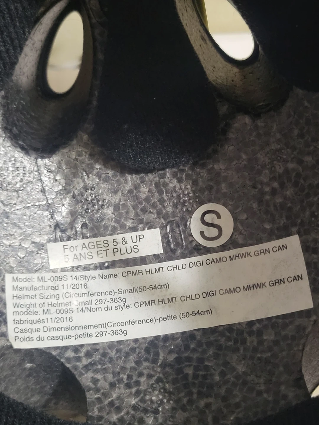 Selling a Raskullz child's helmet in size small. It's in good condition and ready for a new owner! Perfect for biking, skating, or scootering. The helmet features a cool camouflage design and a unique mohawk style.