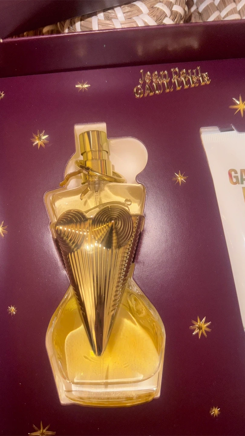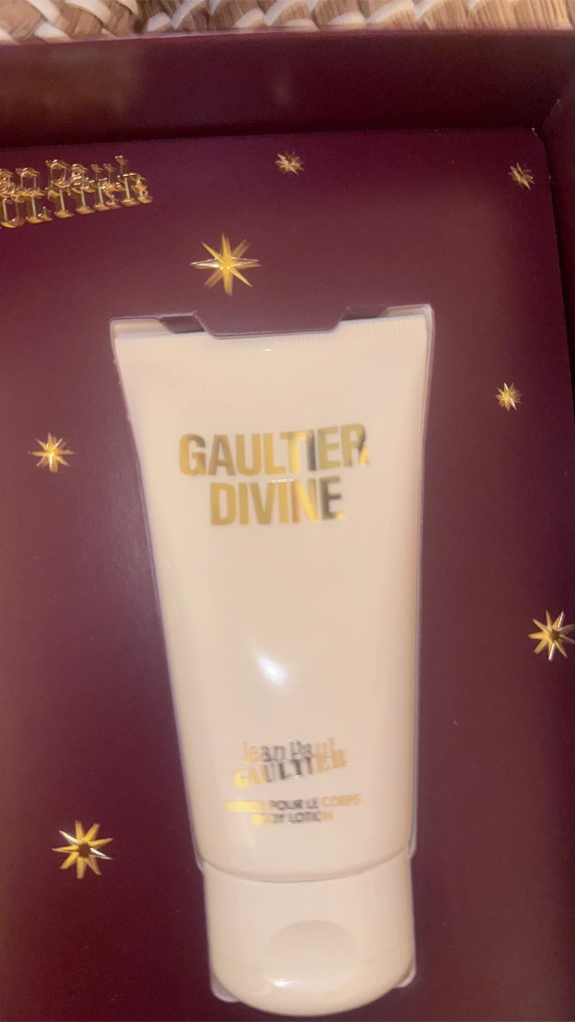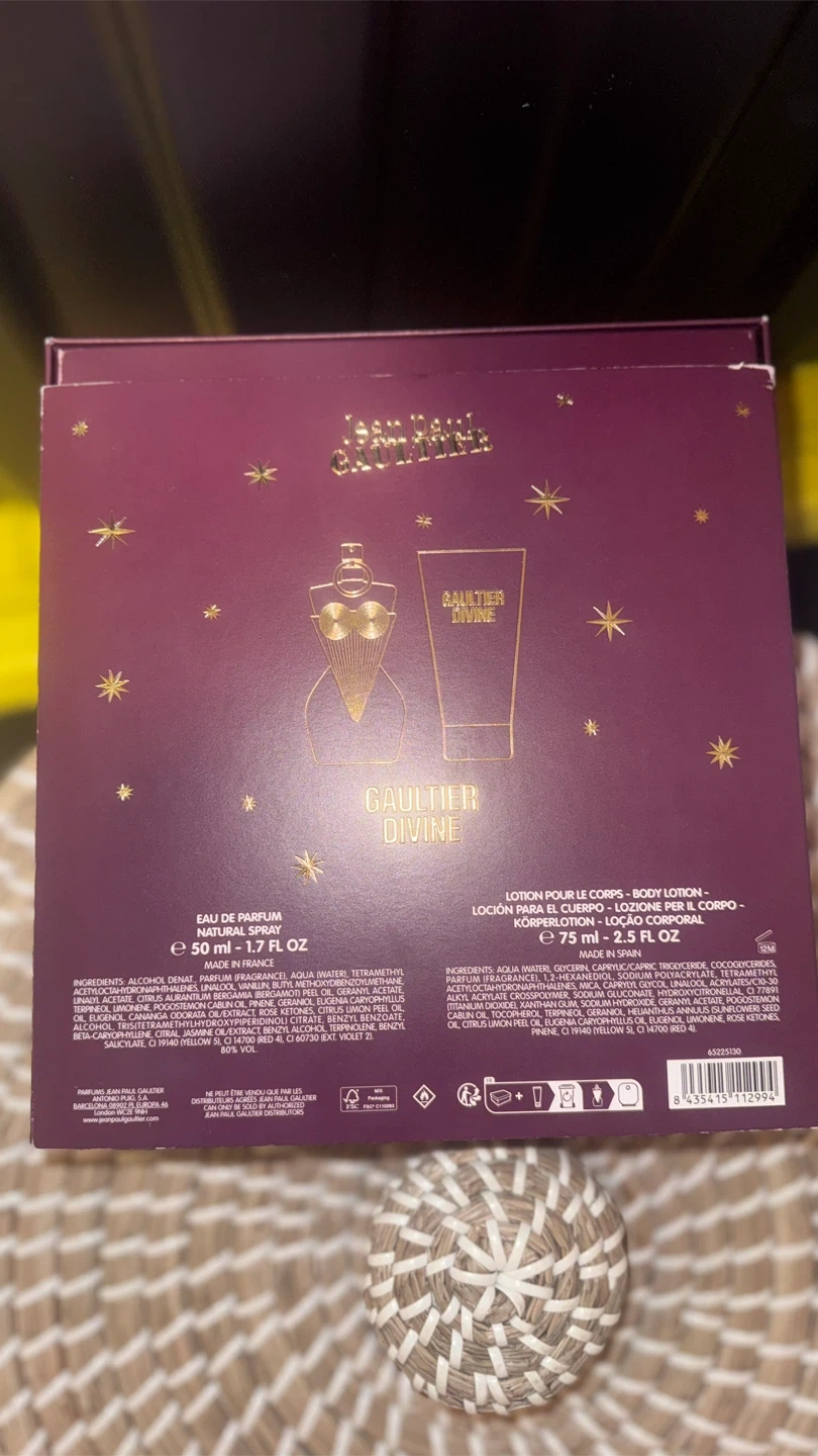 This is a Jean Paul Gaultier Divine gift set. It includes a 50ml Eau de Parfum and a 75ml body lotion. Both items come in their original packaging.