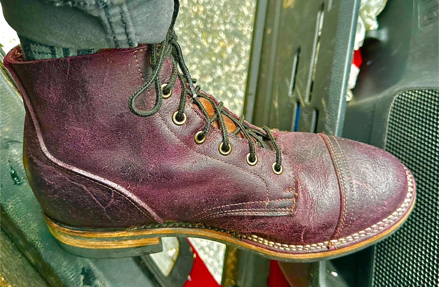 These burgundy leather cap-toe boots are in great condition and ready for a new adventure! The leather has a beautiful, textured finish, and the cap-toe design adds a touch of classic style. They're perfect for everyday wear or dressing up a bit