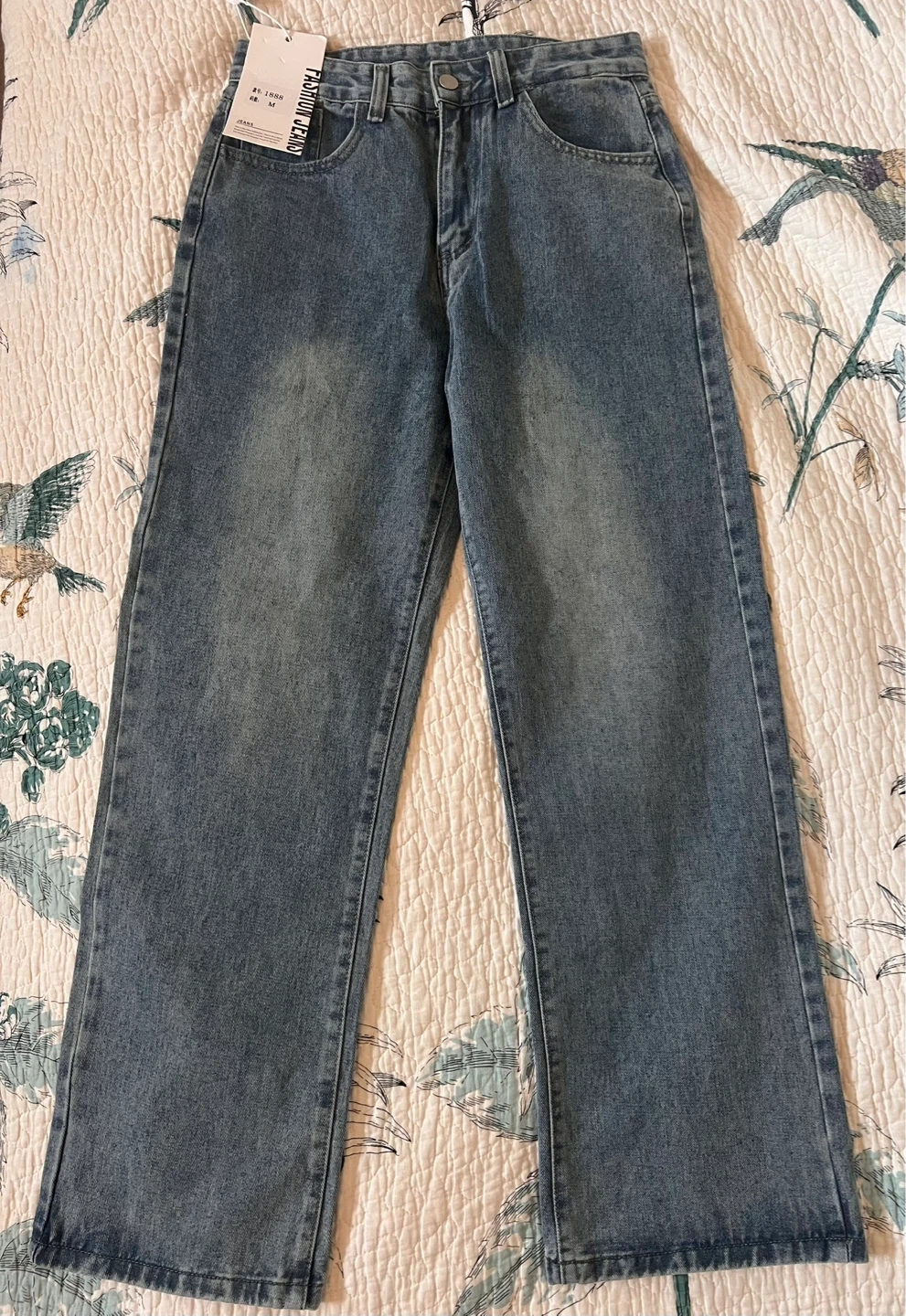 These are blue denim jeans. They're a size medium. The material is denim. Brand new, never worn. I ordered it online but size was too small for me.
