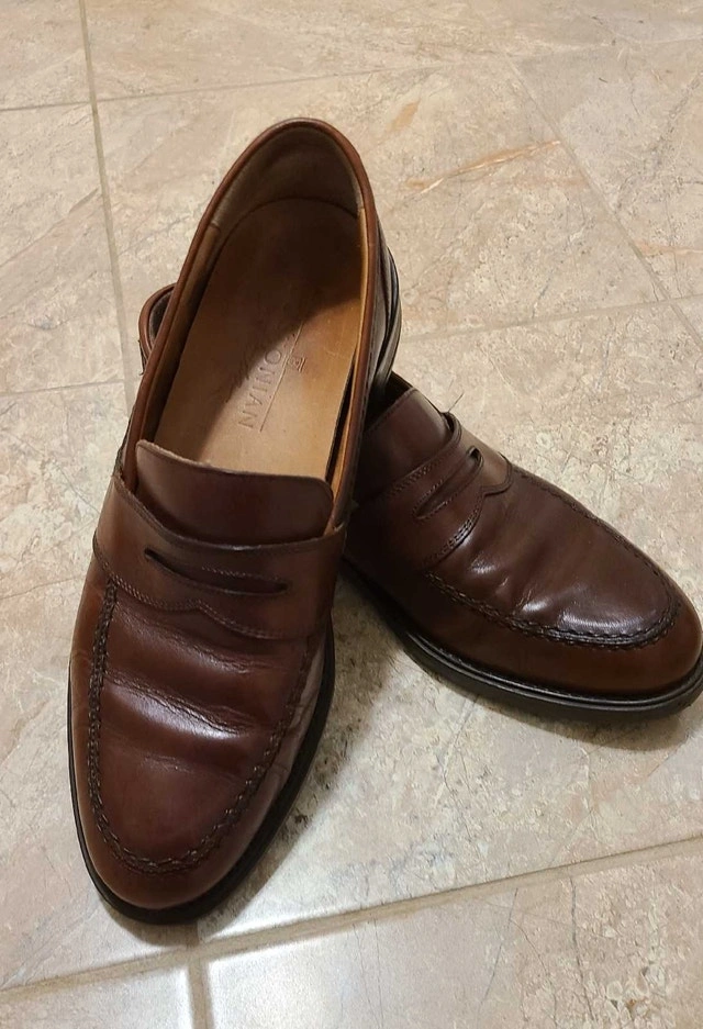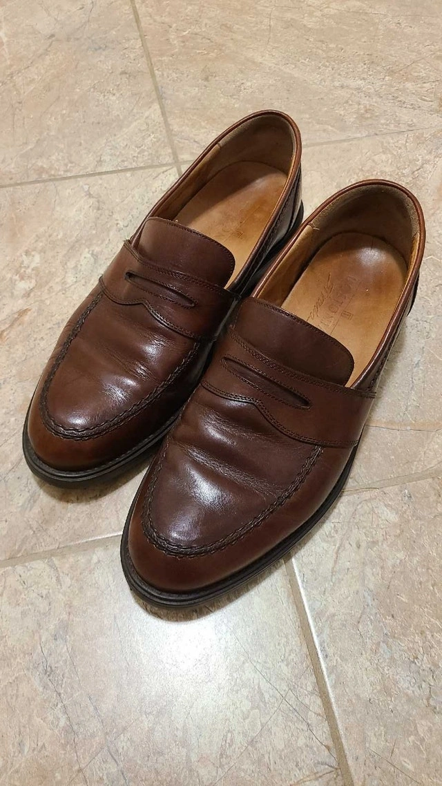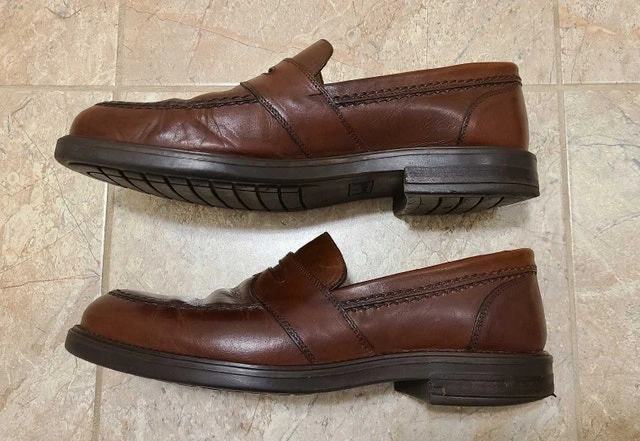 Men's brown leather Bostonian Strada dress loafers. Made in Italy. Size 10 medium width but fit a little larger, closer to 11. Good quality and in nice condition. For sale by owner. Cash accepted.