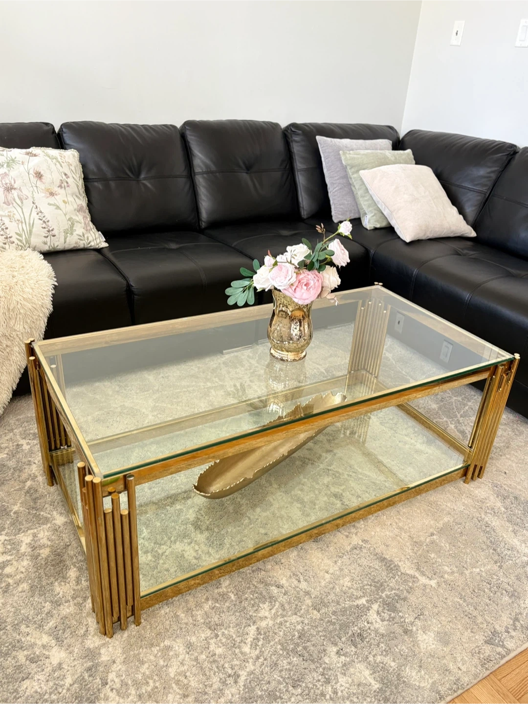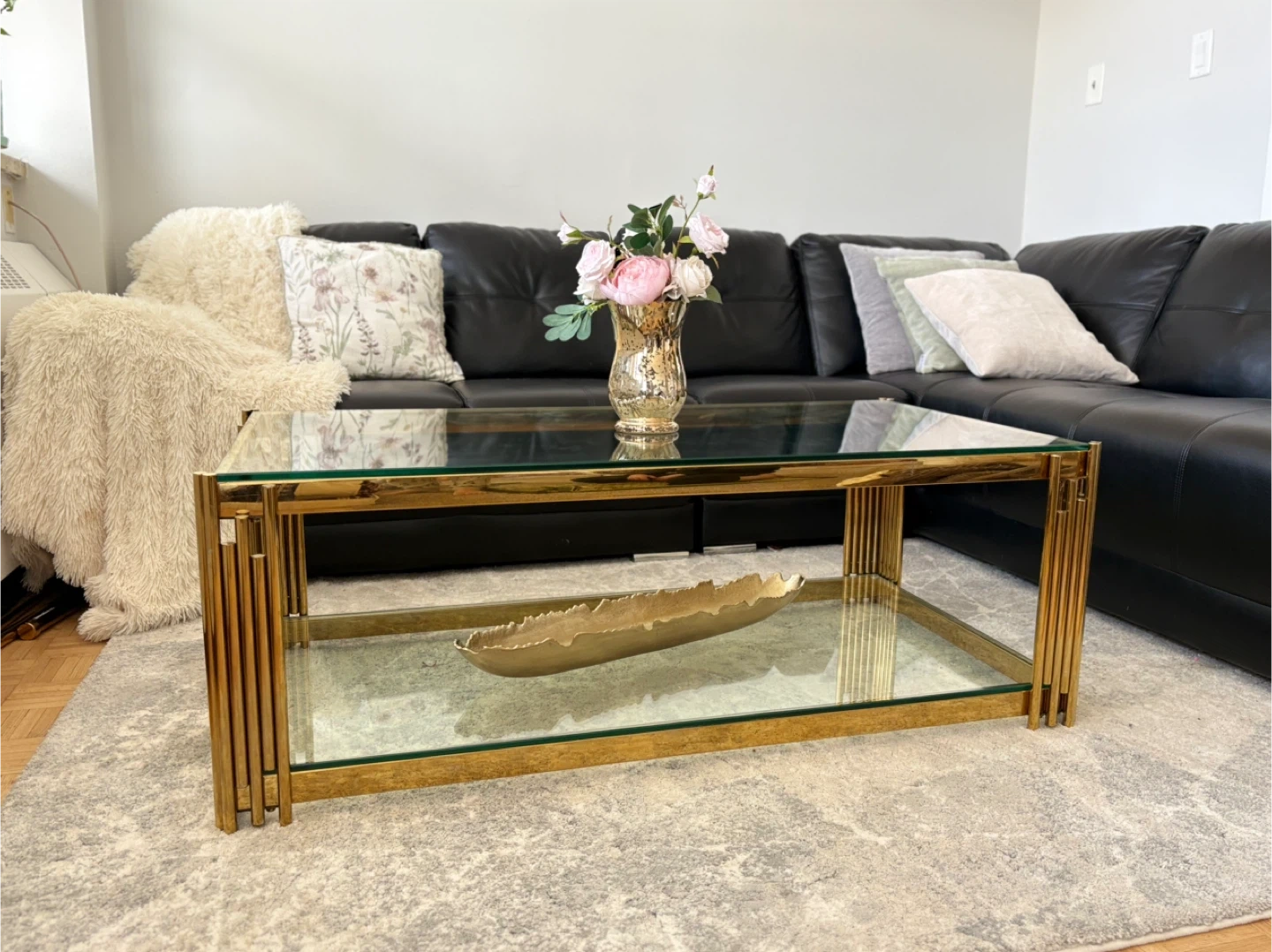 Gold Coffee Table with unbroken Glass Top