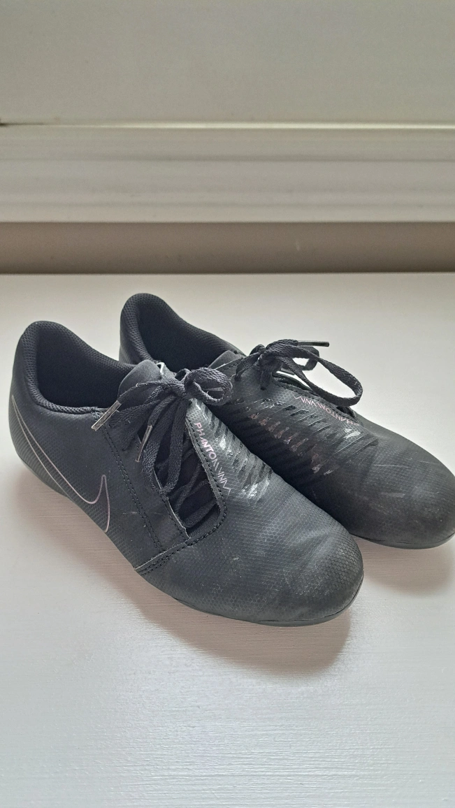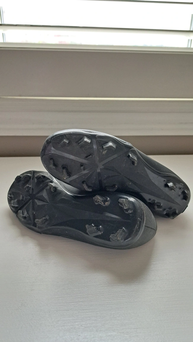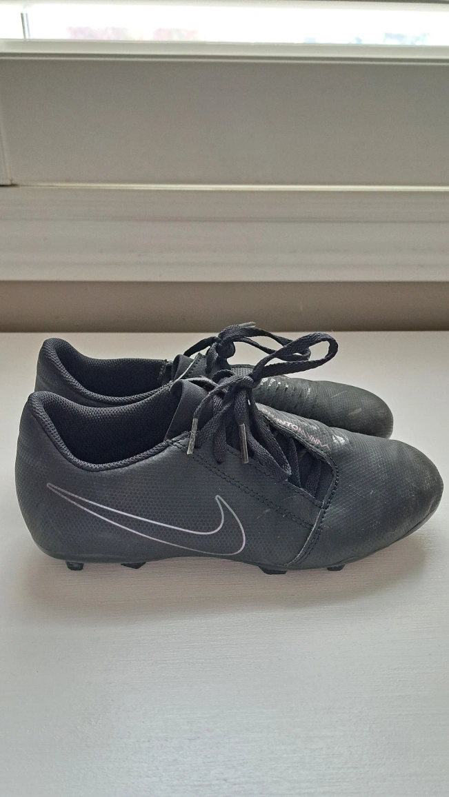 Selling a pair of Nike Phantom VNX soccer cleats in black. They're in used condition, as you can see in the photos. Still lots of life left in them for the field! Size 4Y.