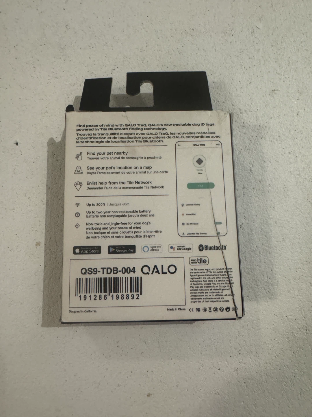 Selling a brand new QALO Traq Trackable Dog ID Tag, still in its original packaging! This tag uses Tile technology to help you find your pet nearby.