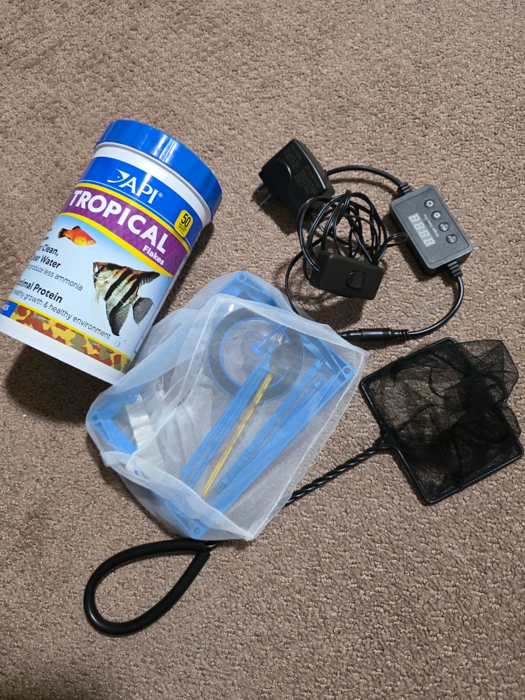 This is a complete aquarium setup, perfect for starting your fishkeeping journey. It includes a heater, filter, food, and nets for easy maintenance. Get everything you need to create a beautiful underwater world! fish included as well.