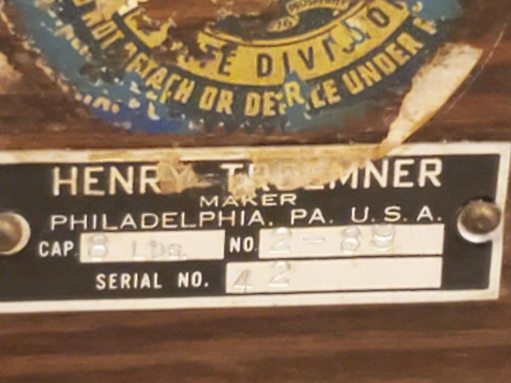 Henry Troemner Maker, Philadelphia, PA. Serial No. 42. Cap 8lb. No. 2-89. I have owned this for the last 45 years, just thinning out my scale collection. See my page for others. Type: Scale Balance.