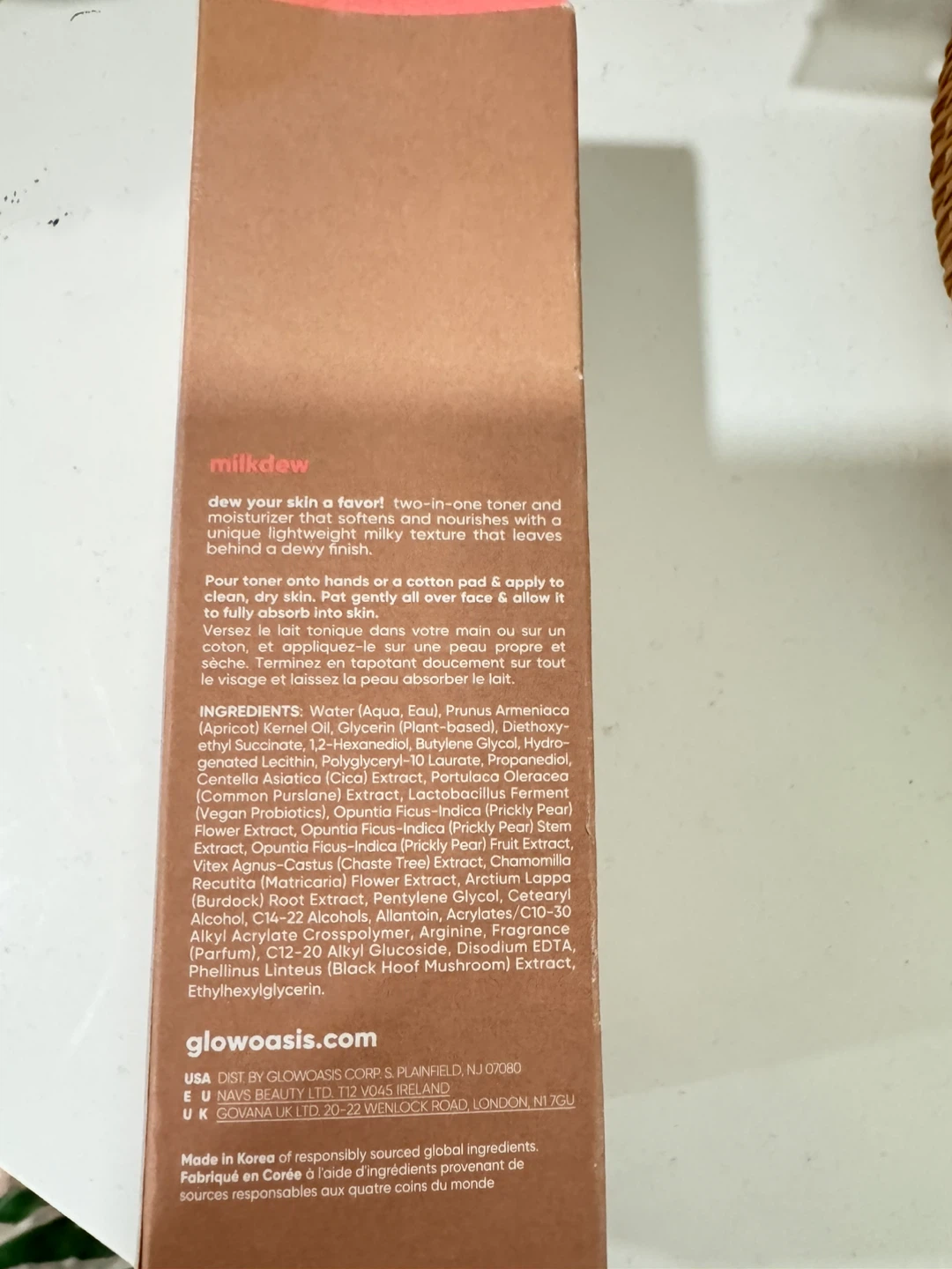 Glowoasis Milkdew is a two-in-one toner and moisturizer. It softens and nourishes with a unique lightweight milky texture. It leaves behind a dewy finish.