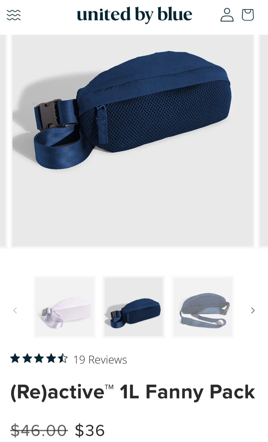United By Blue (Re)active 1L Fanny Pack in navy! This stylish and functional fanny pack is perfect for keeping your essentials close while on the go.