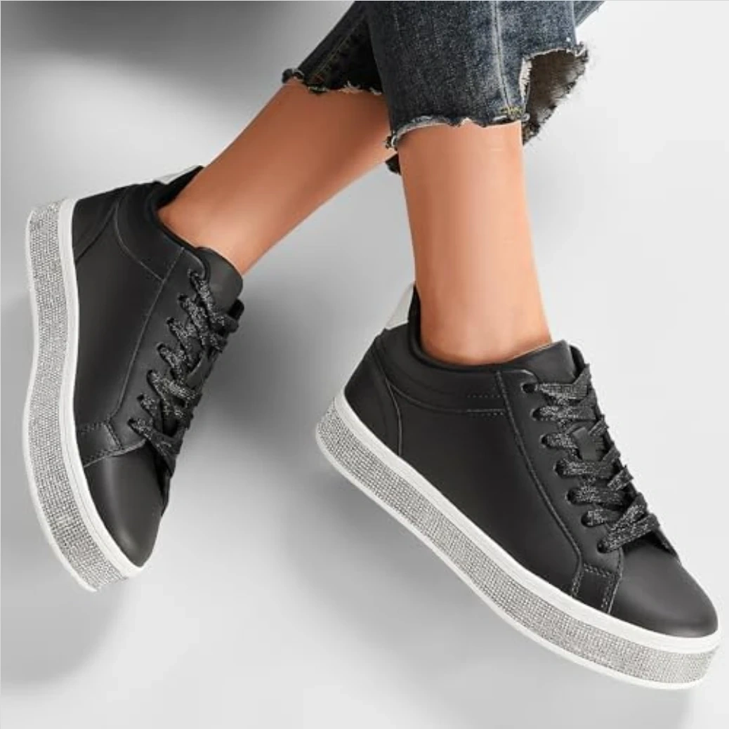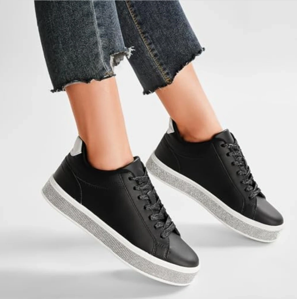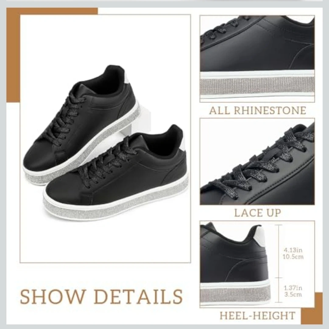 Add a bold, eye catching sparkle to your look with these rhinestone platform sneakers designed to stand out while keeping you comfortable all day β¨π