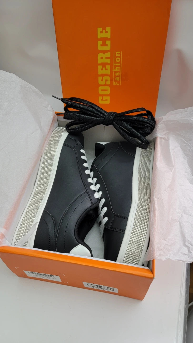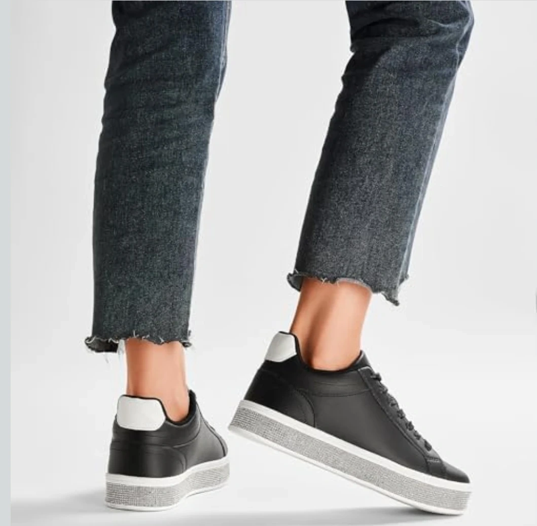 Add a bold, eye catching sparkle to your look with these rhinestone platform sneakers designed to stand out while keeping you comfortable all day β¨π