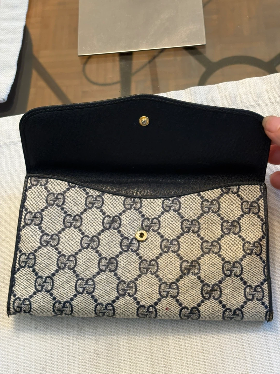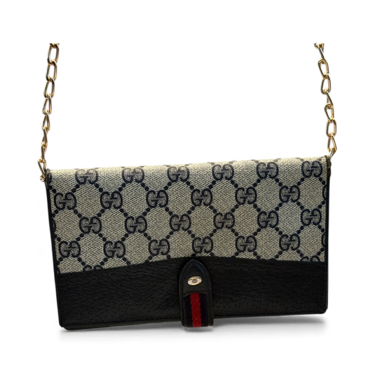 Selling a Gucci Luxury Collection wallet with a chain strap. It features the classic Gucci GG pattern. A stylish and functional accessory!