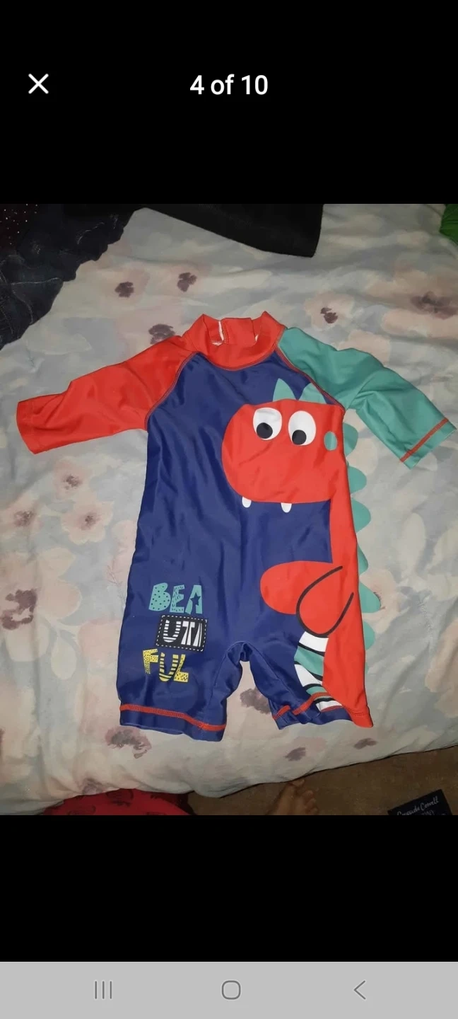 Selling a bundle of kids' clothing with various sizes and styles! Sizes range from 12 to 24 months (1 to 2 years) Includes a '#1 Bro' orange long-sleeve shirt, a cute dinosaur swimsuit, a Calvin Klein hoodie, and a festive green Christmas sweater along with jeans and matching outfits and bibs too and a washable reusable swim diaper. Perfect for your little one's wardrobe! Pickup only. Guildford near the Buy-Low. Selling for only $50.
