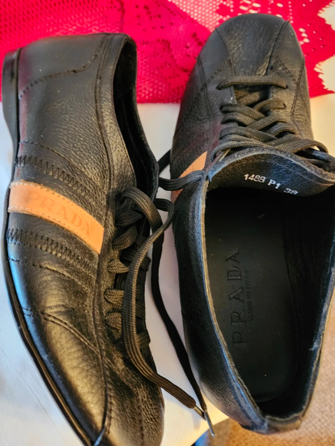 Selling a pair of Prada black leather sneakers in size 38. They are in good condition and ready for a new owner!