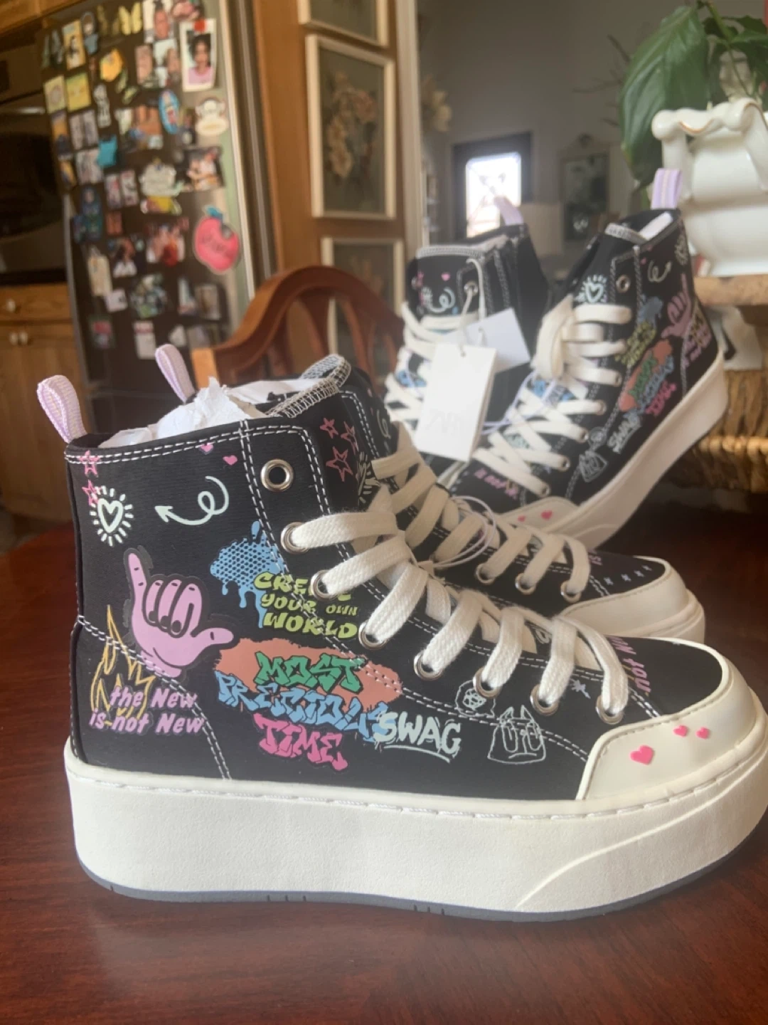 Zara High Top Sneakers with Graffiti Print