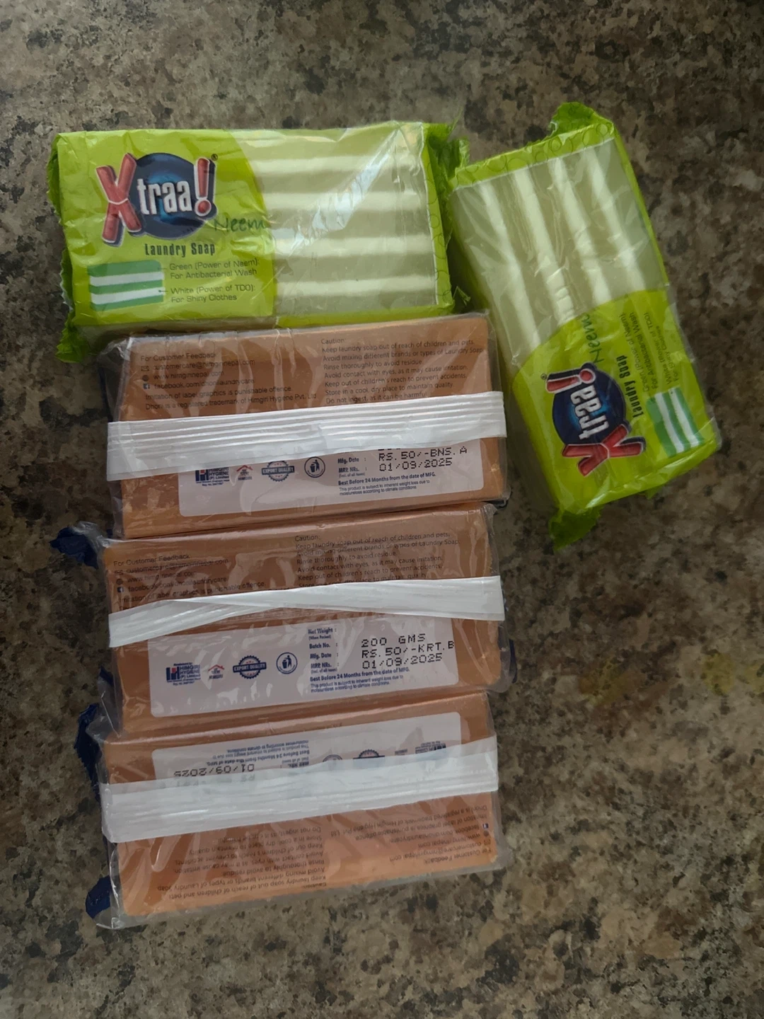 This listing is for Xtraa! Laundry Soap bars. Each bar is 200 GMS. The soap is formulated with Neem for antibacterial wash and TDO for shiny clothes.